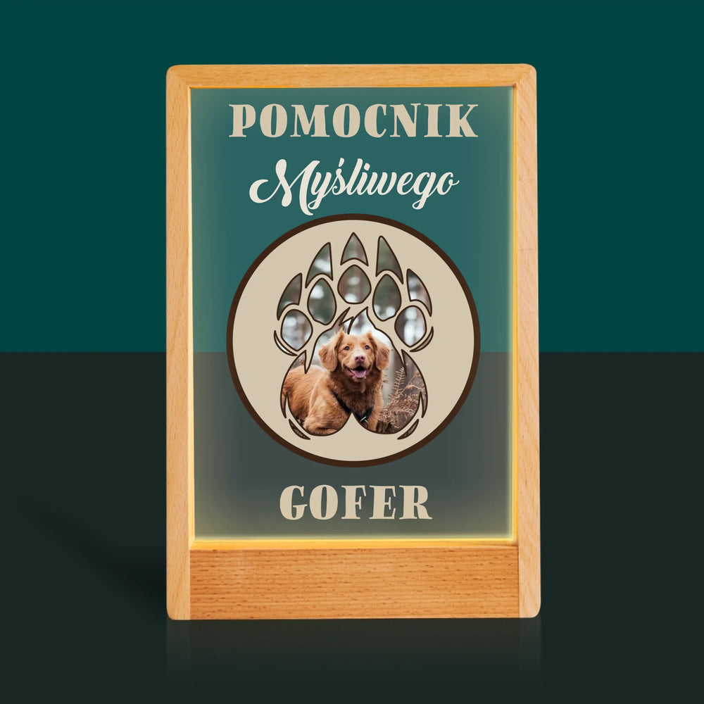 Kształt Ze Zdjęć: Pomocnik Myśliwego - Wydruk na szkle akrylowym w ramce LED