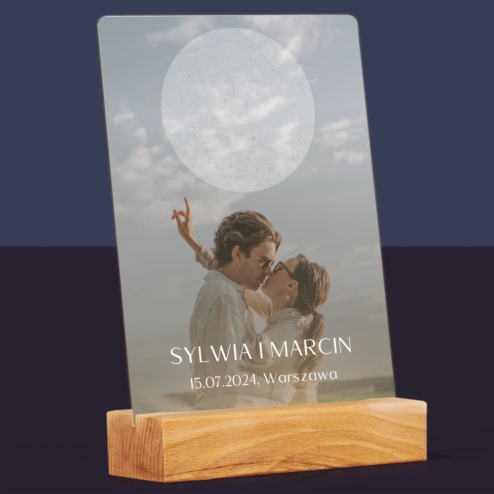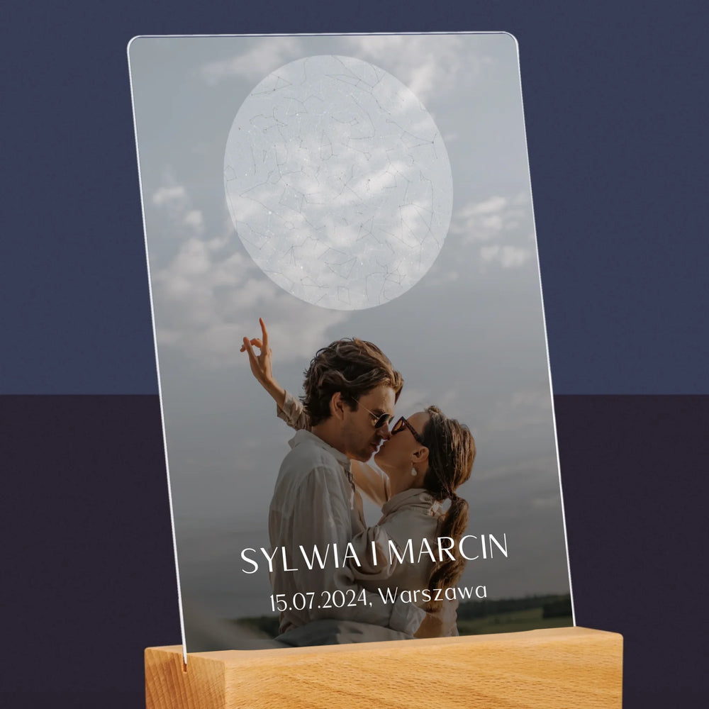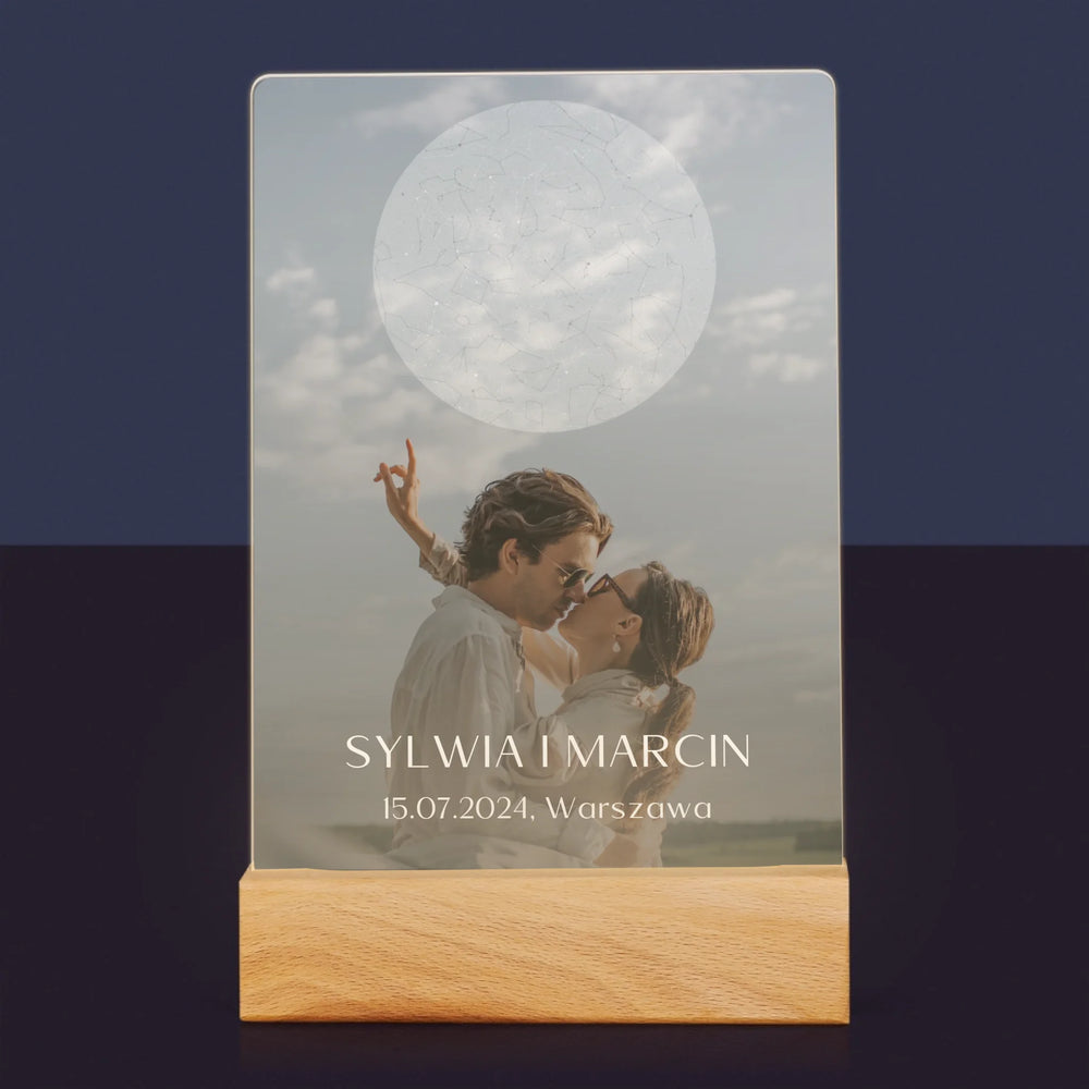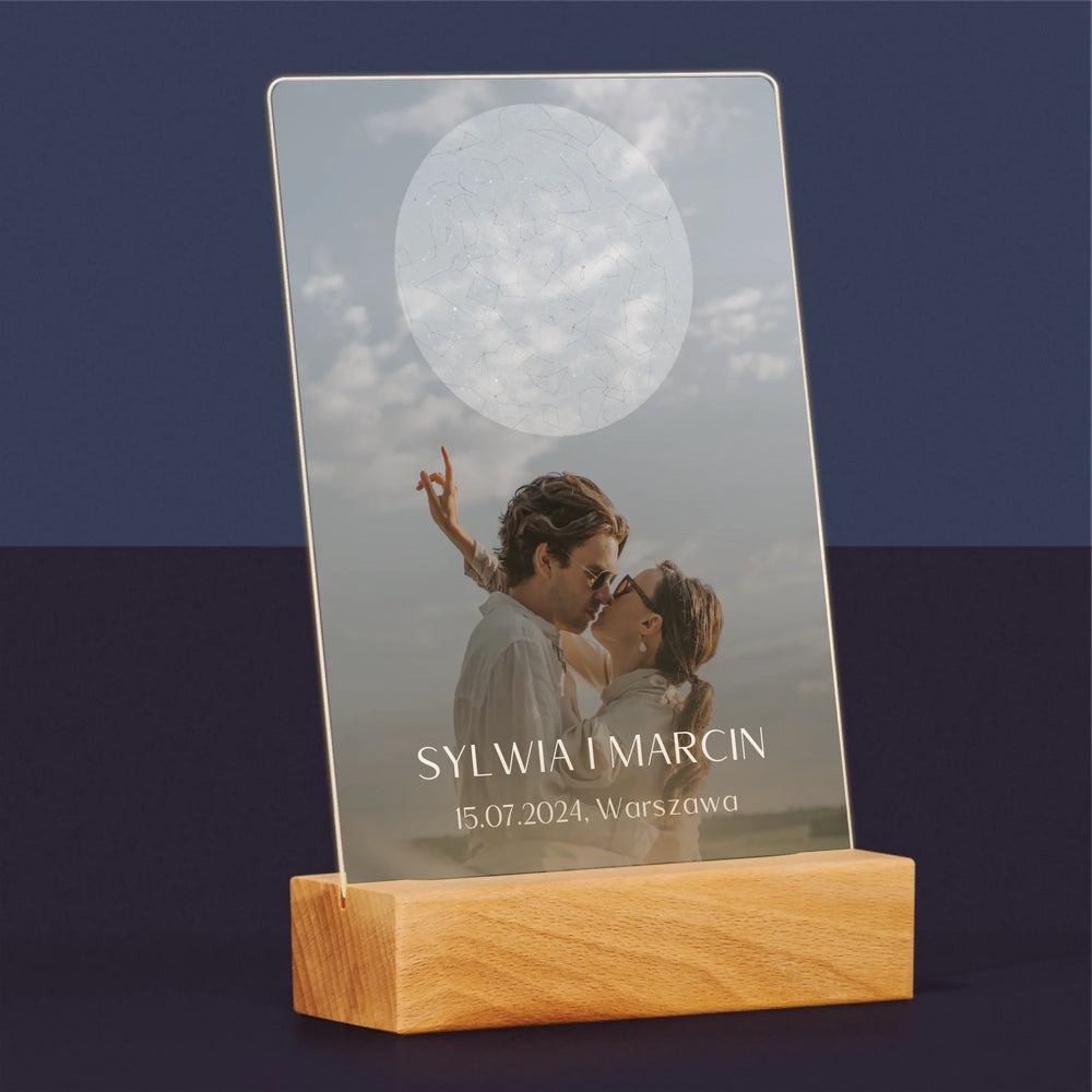 Mapa Gwiazd: Ślub - Wydruk na szkle akrylowym w ramce LED