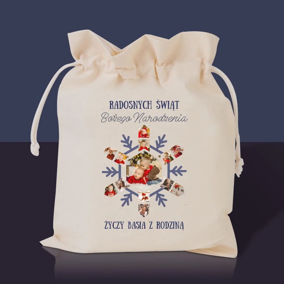 Woreczek typu sakiewka wykonany jest ze 100% bawełny i ma wymiary 20 x 25 cm.