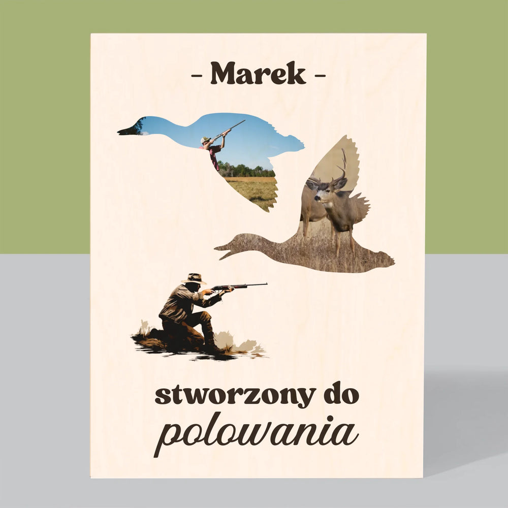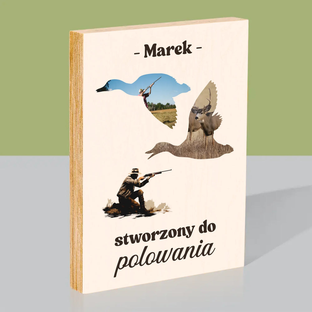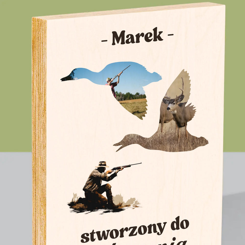 Kształt Ze Zdjęć: Stworzony Do Polowania - Wydruk na drewnie - Pion