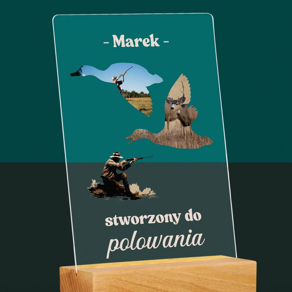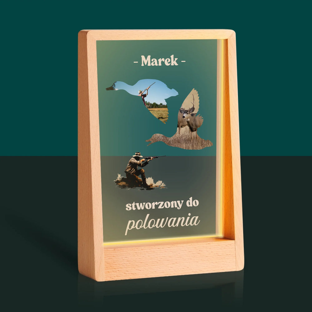 Kształt Ze Zdjęć: Stworzony Do Polowania - Wydruk na szkle akrylowym w ramce LED