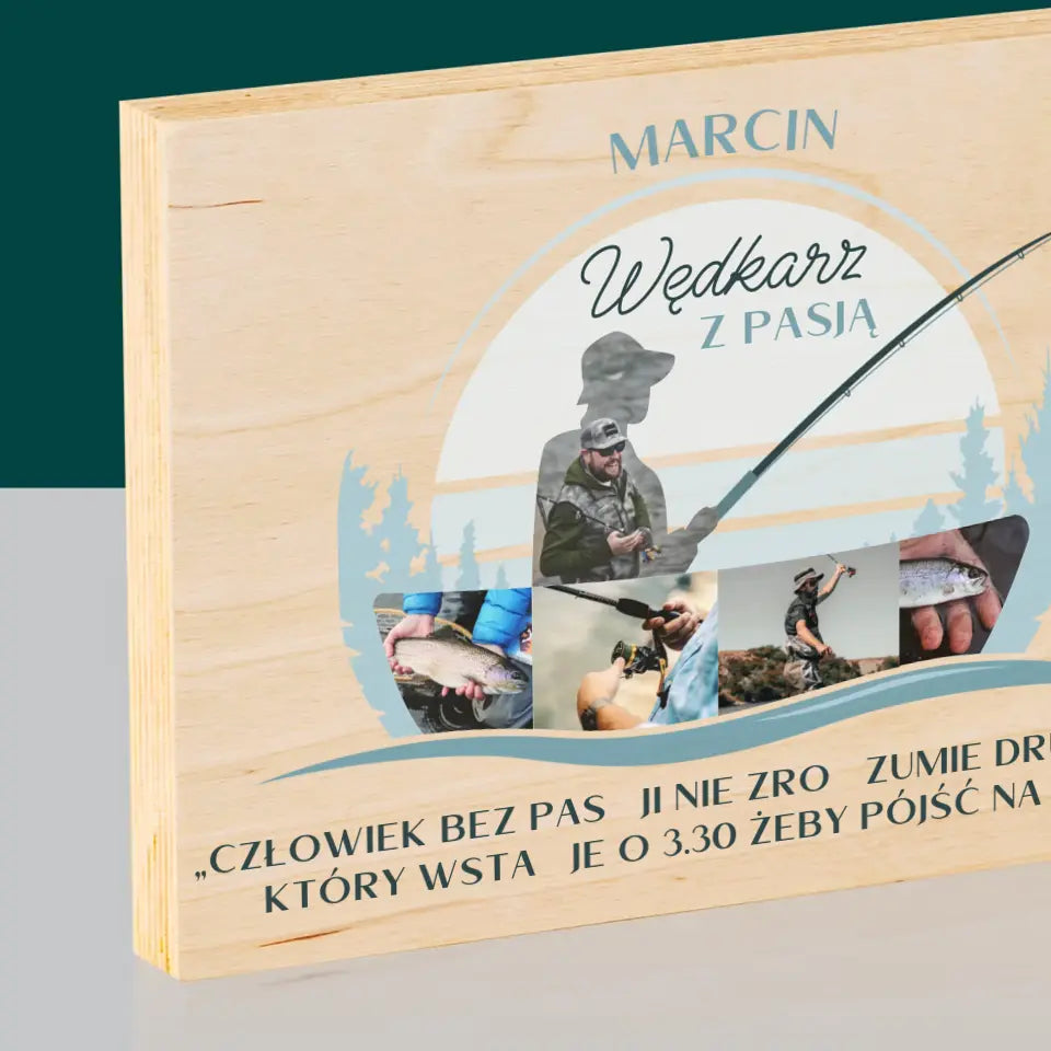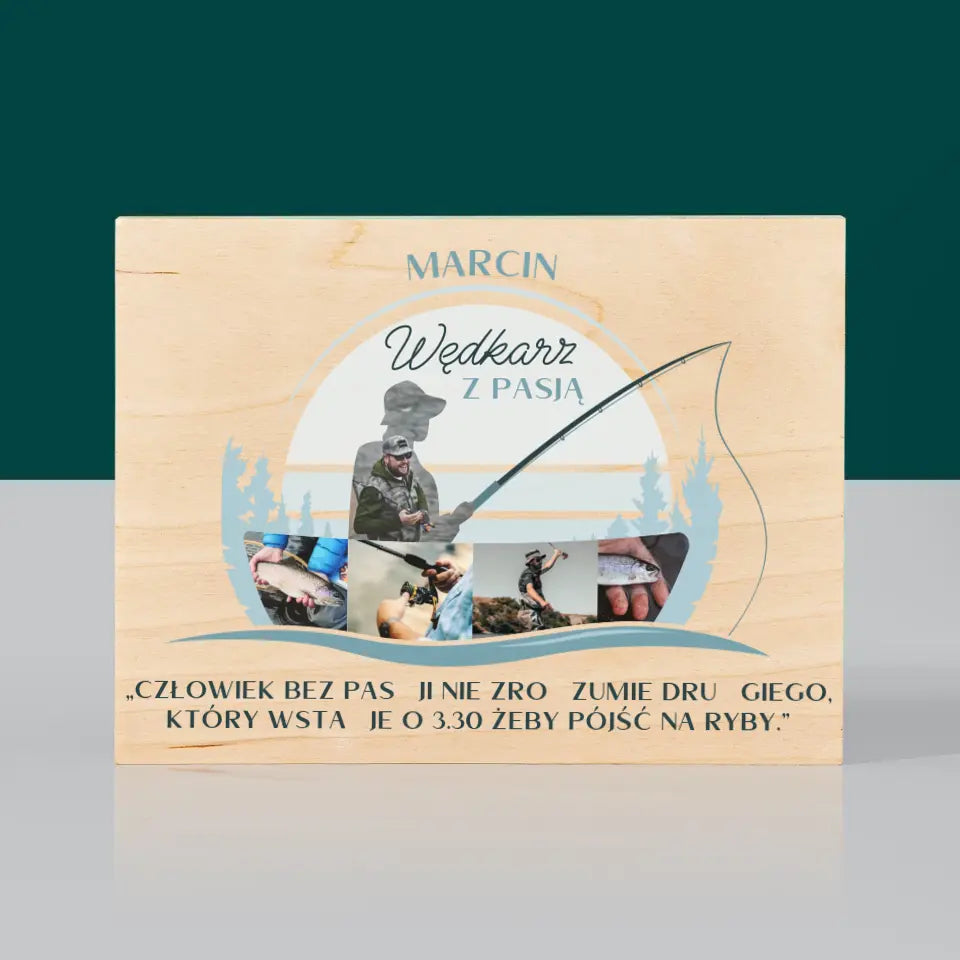 Kształt Ze Zdjęć: Wędkarz z Pasją - Wydruk na drewnie - Poziom