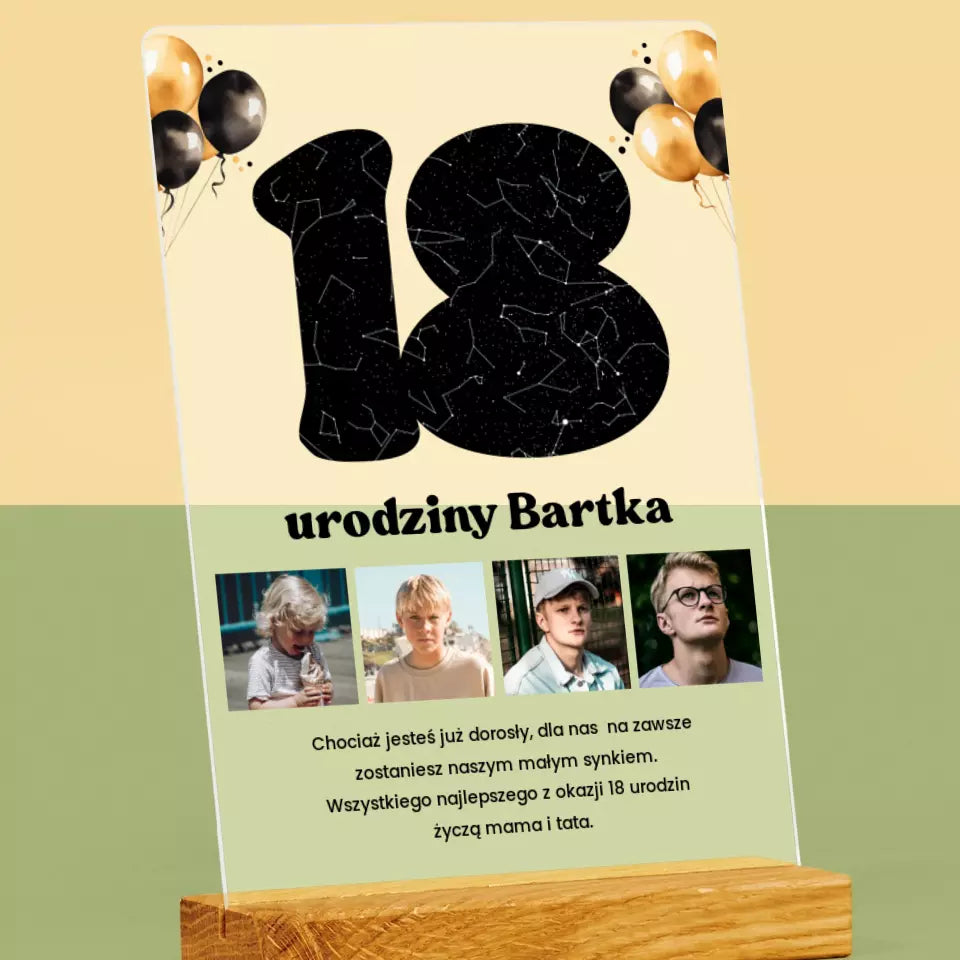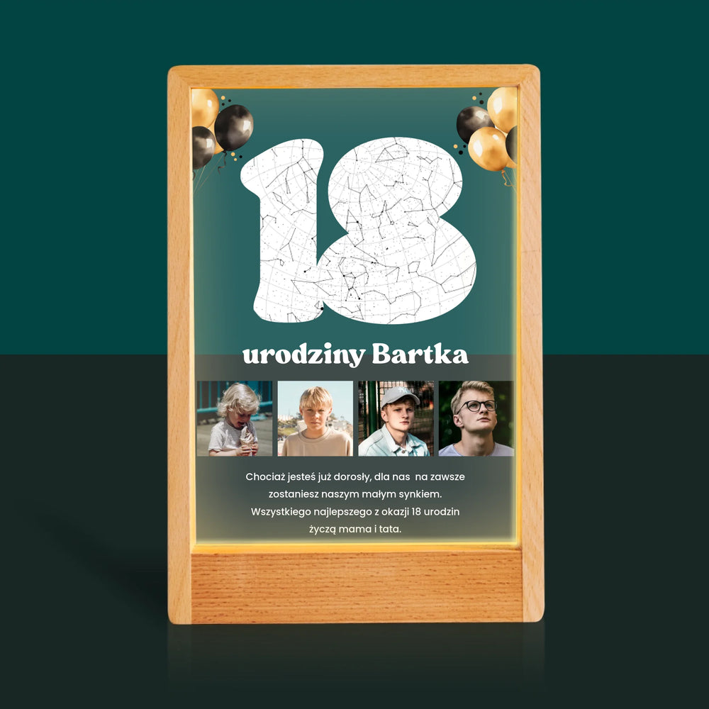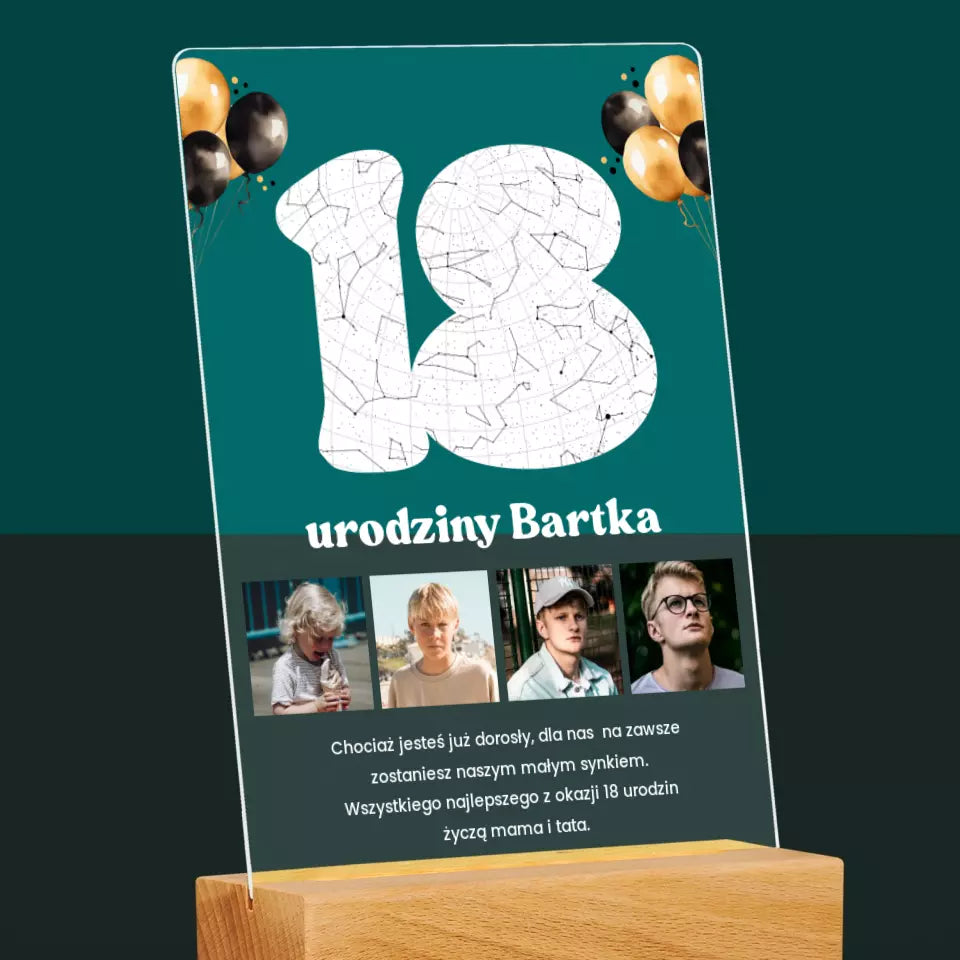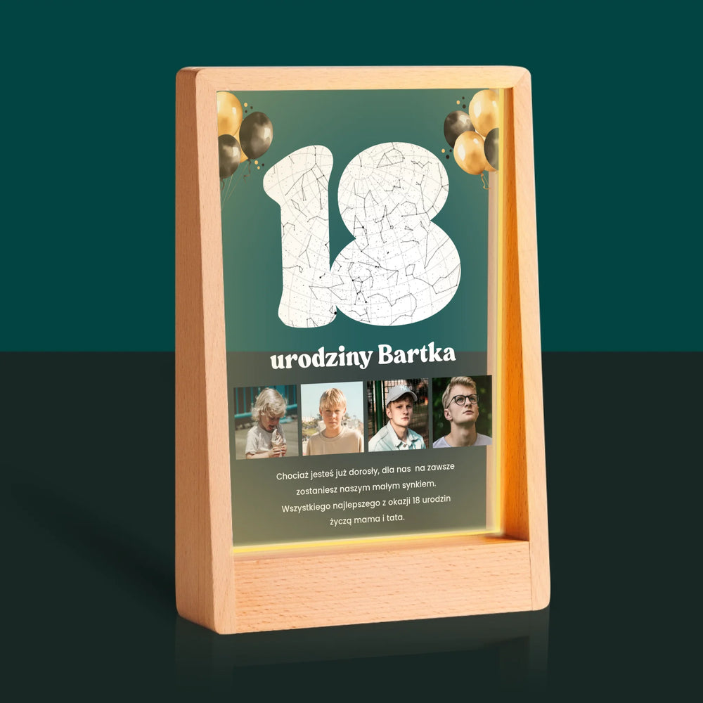Mapa Gwiazd: 18 Urodziny Gwiazdy z Dedykacją - Wydruk na szkle akrylowym w ramce LED