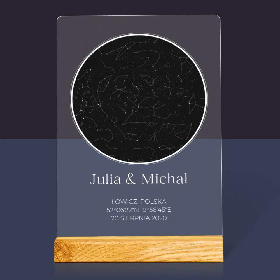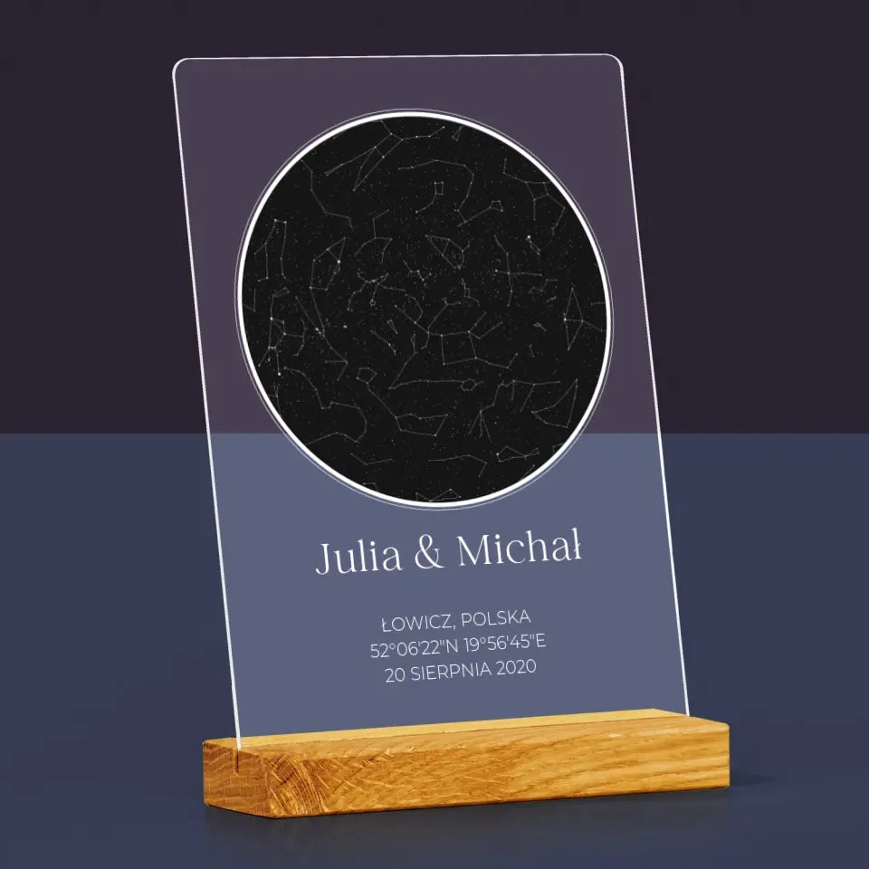 Mapa Gwiazd: Dla Zakochanych - Wydruk na szkle akrylowym LED