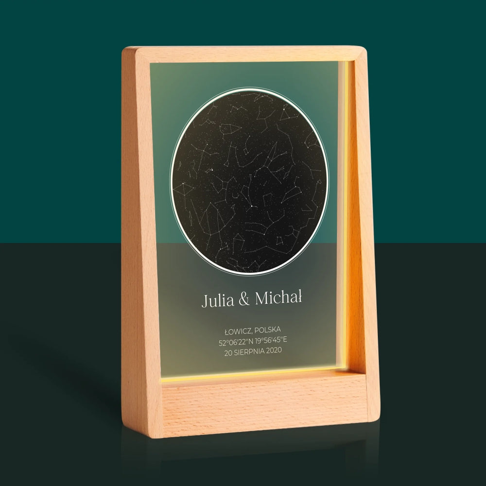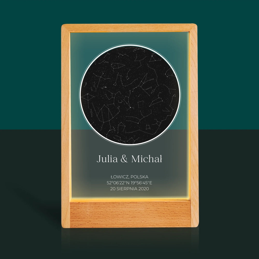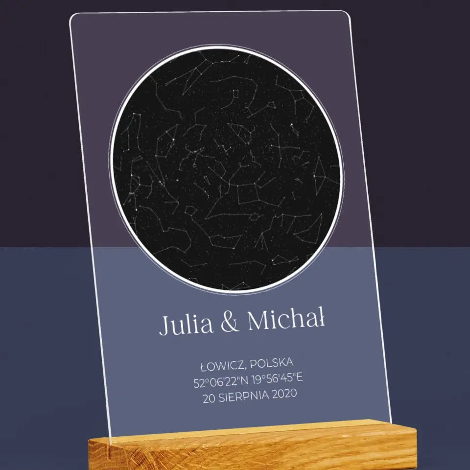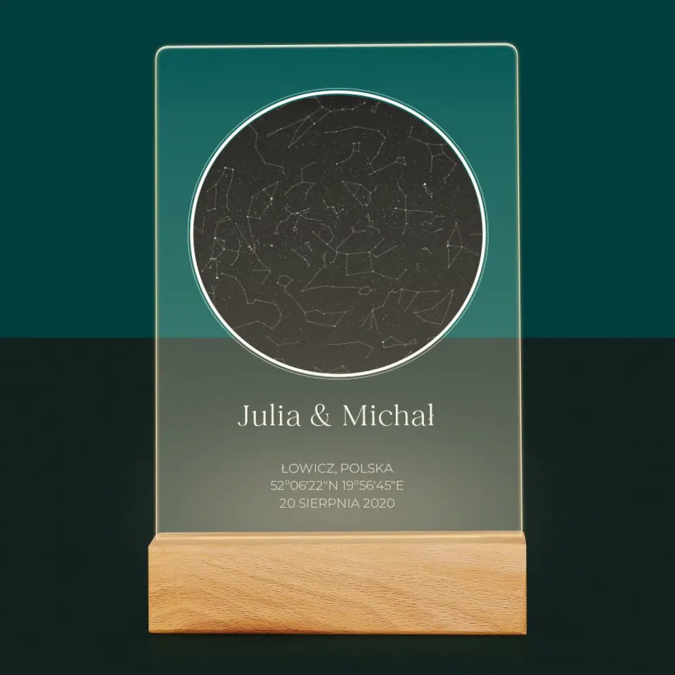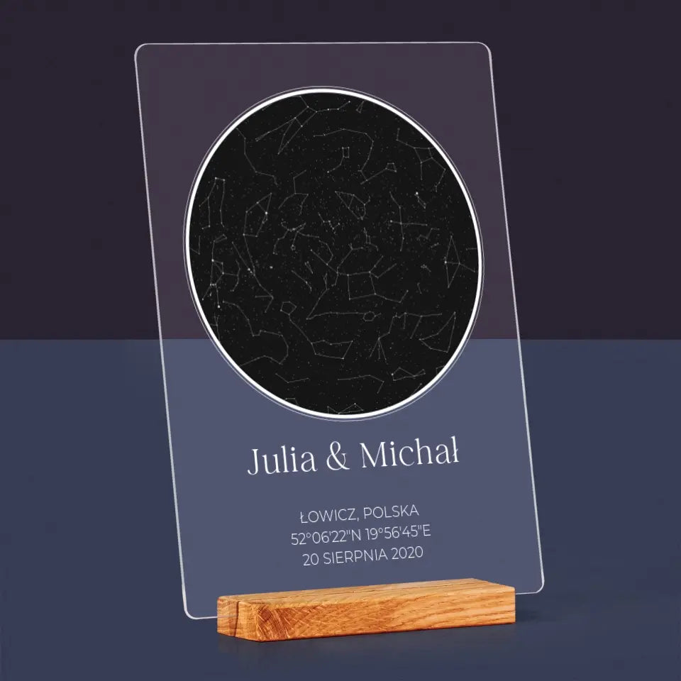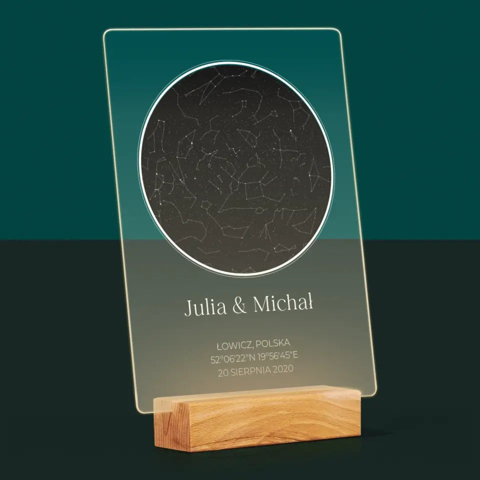 Mapa Gwiazd: Dla Zakochanych - Wydruk na szkle akrylowym w ramce LED