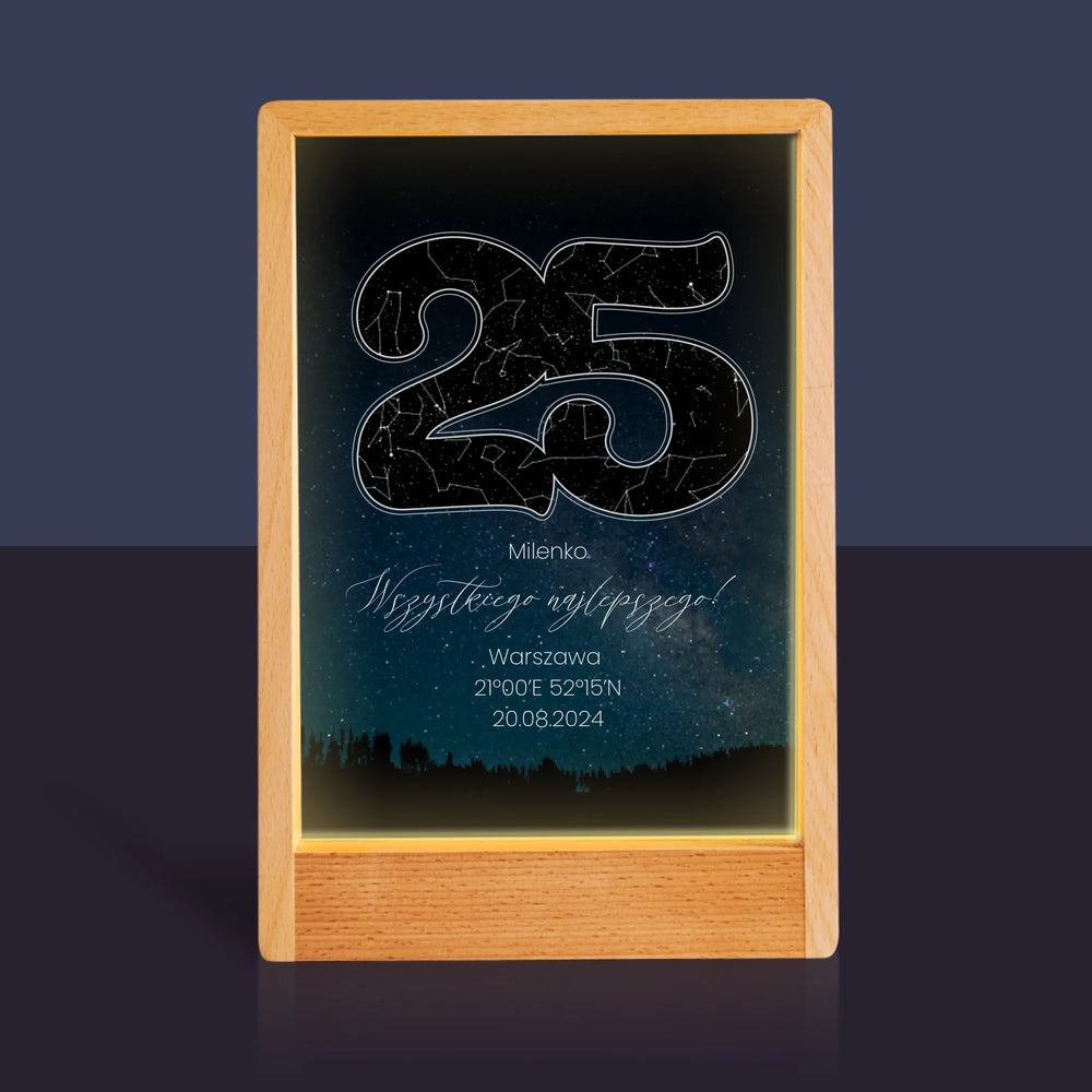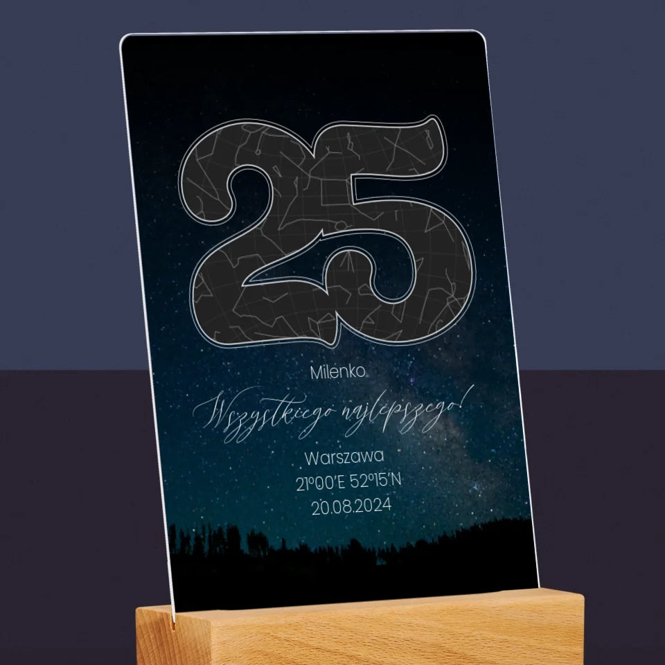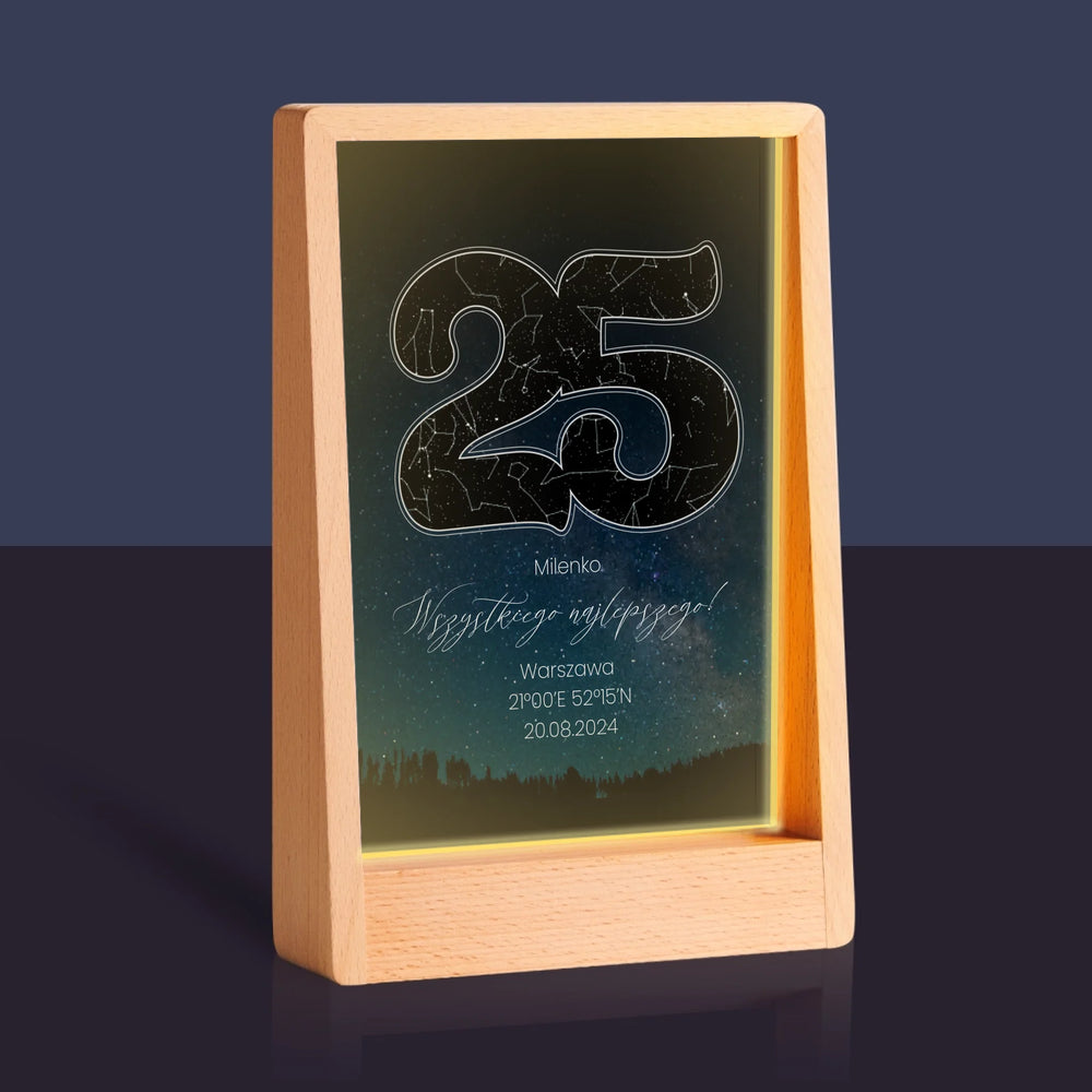 Mapa Gwiazd: Gwiazdy Na 25 Urodziny - Wydruk na szkle akrylowym w ramce LED