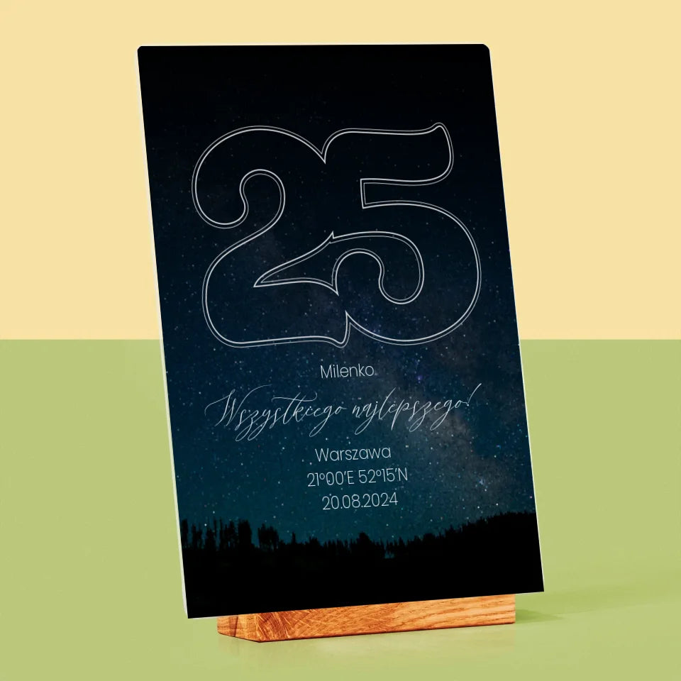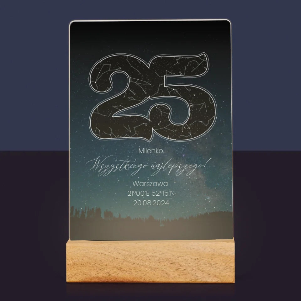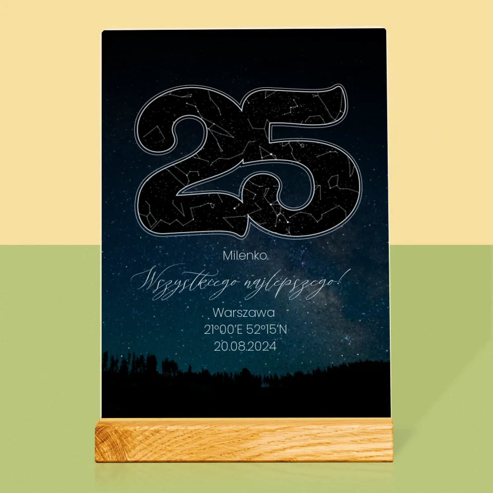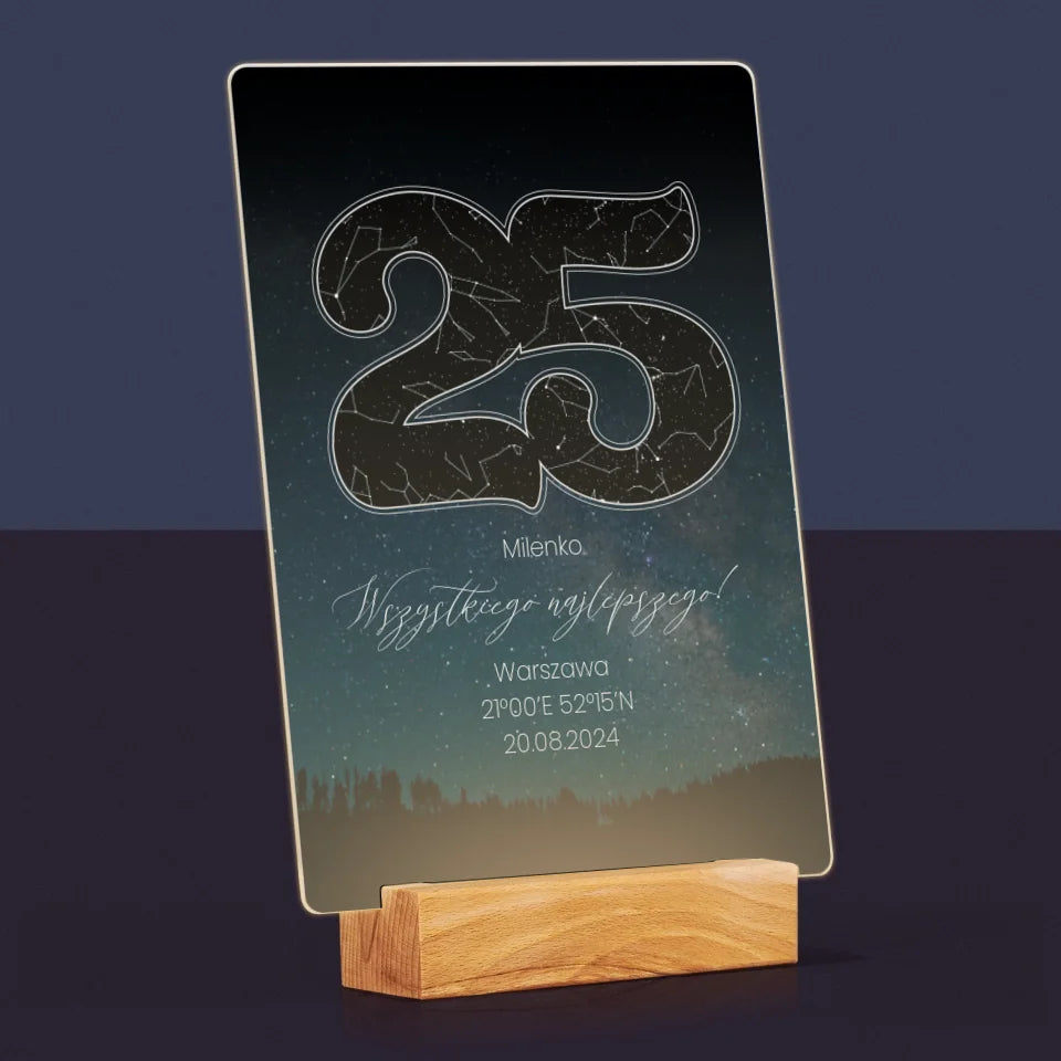 Mapa Gwiazd: Gwiazdy Na 25 Urodziny - Wydruk na szkle akrylowym w ramce LED