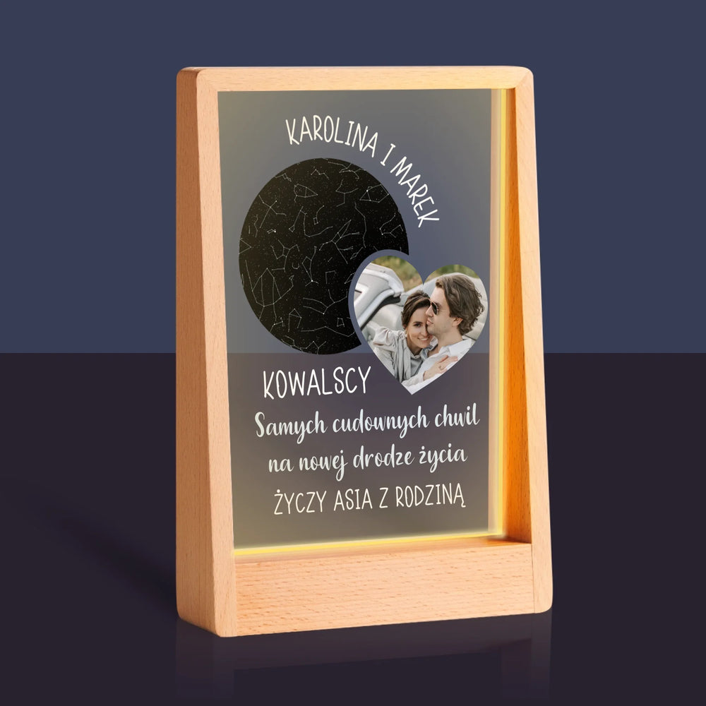 Mapa Gwiazd: Nowa Droga Życia Ślub - Wydruk na szkle akrylowym w ramce LED