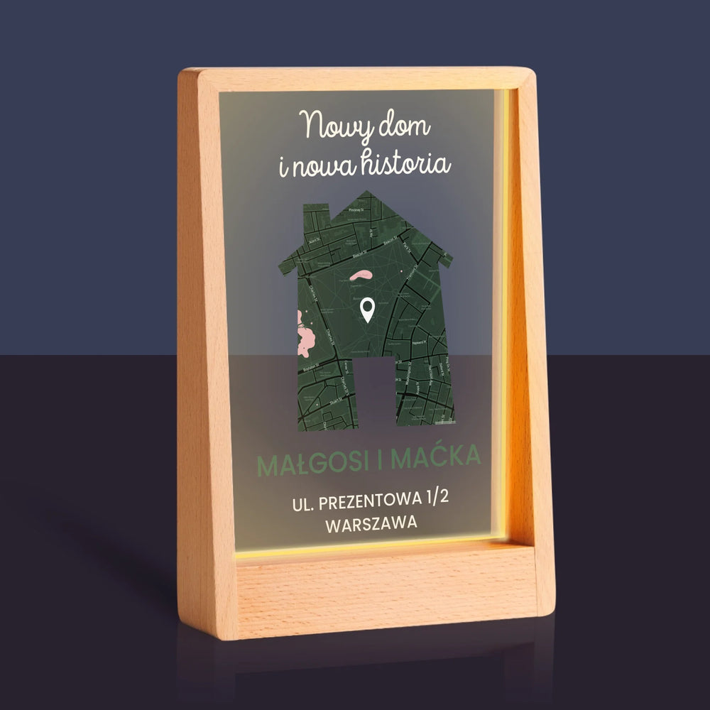 Mapa Miasta: Nowy Dom - Wydruk na szkle akrylowym w ramce LED