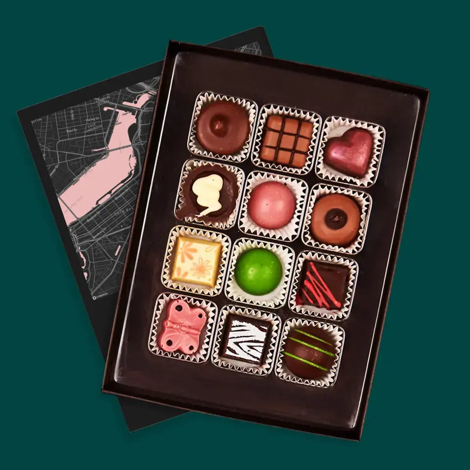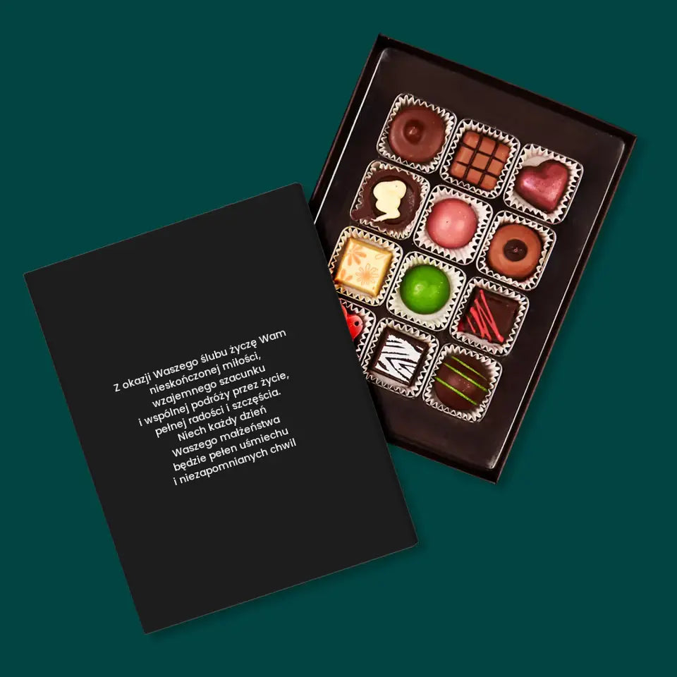 Pyszne praliny z belgijskiej czekolady w eleganckim pudełku z wybraną przez Ciebie personalizacją.