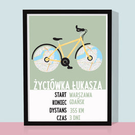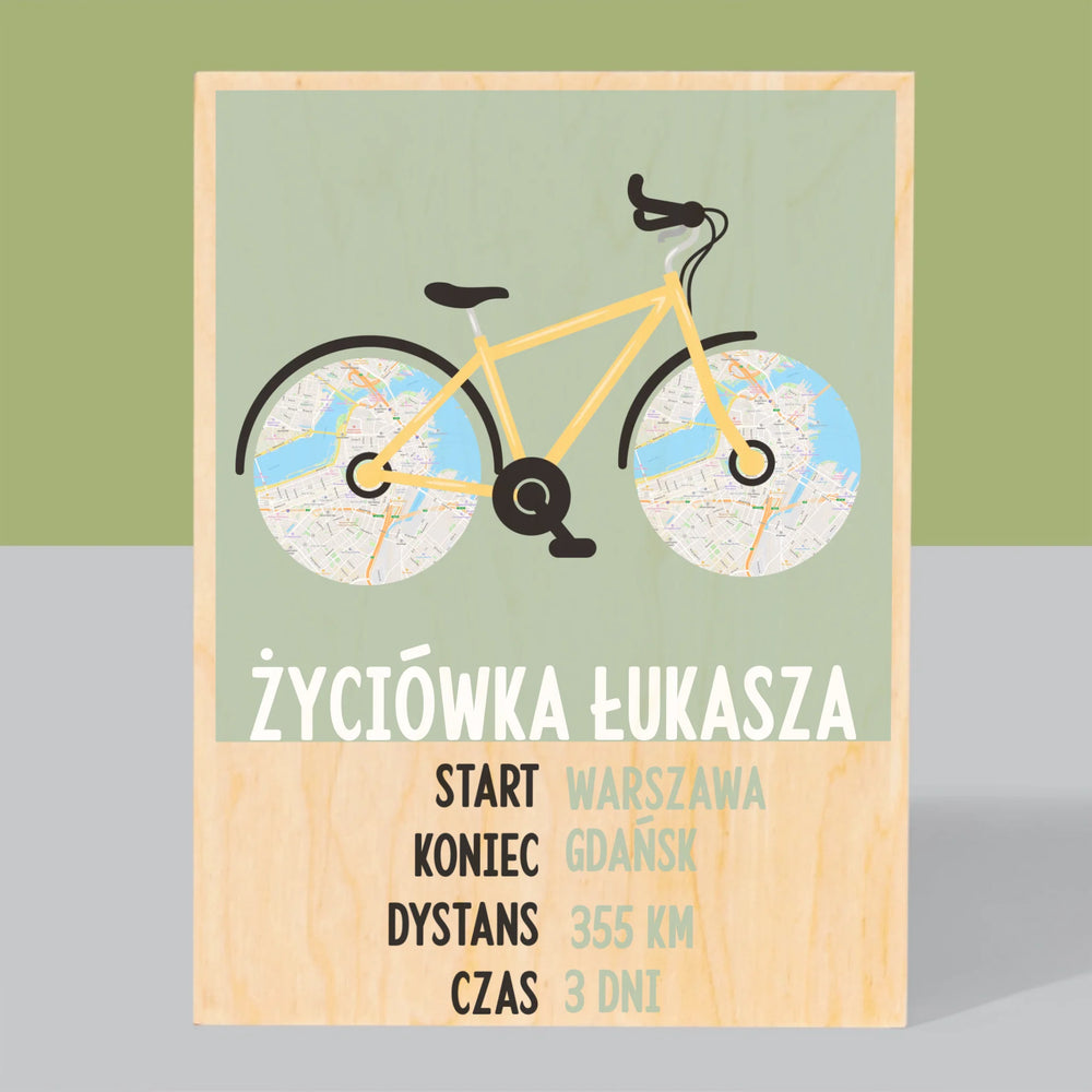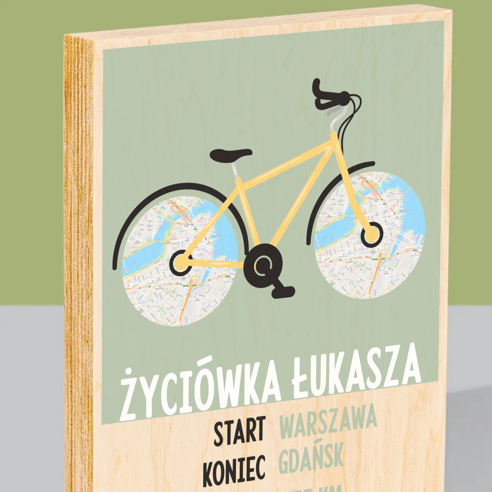 Mapa Miasta: Rowerowa Życiówka - Wydruk na drewnie - Pion