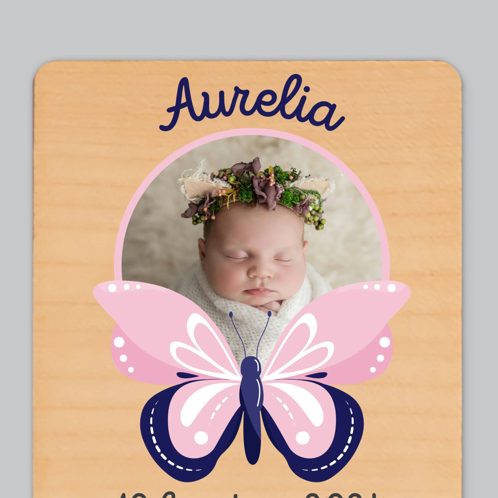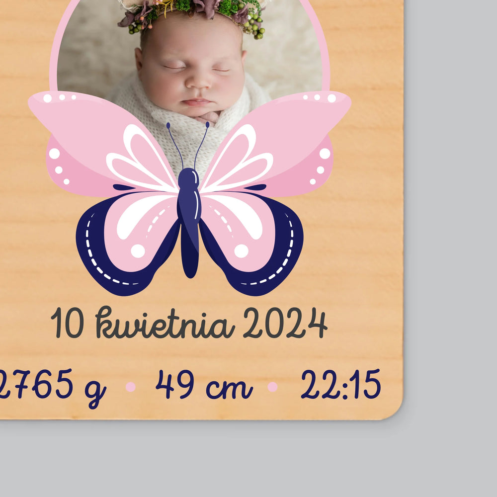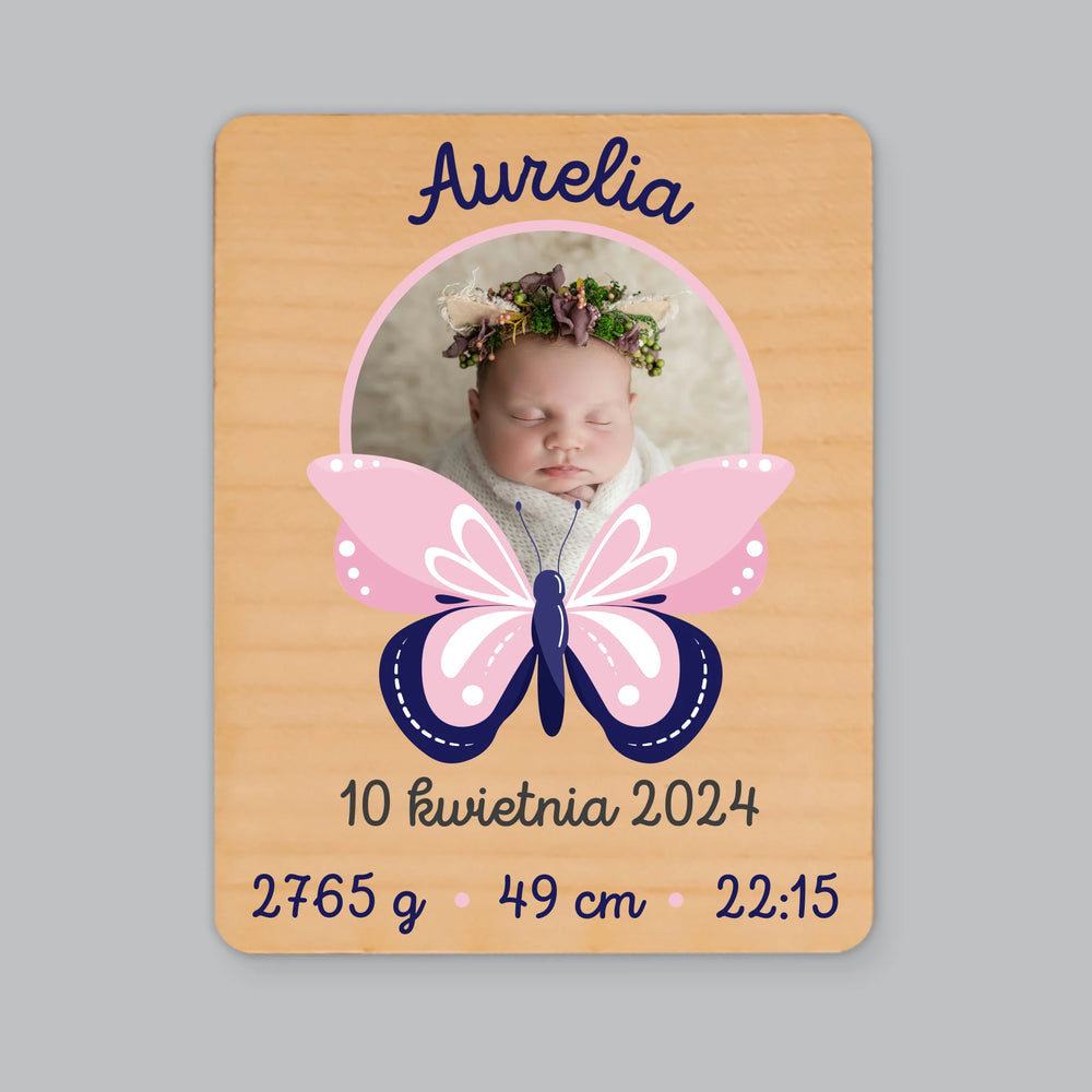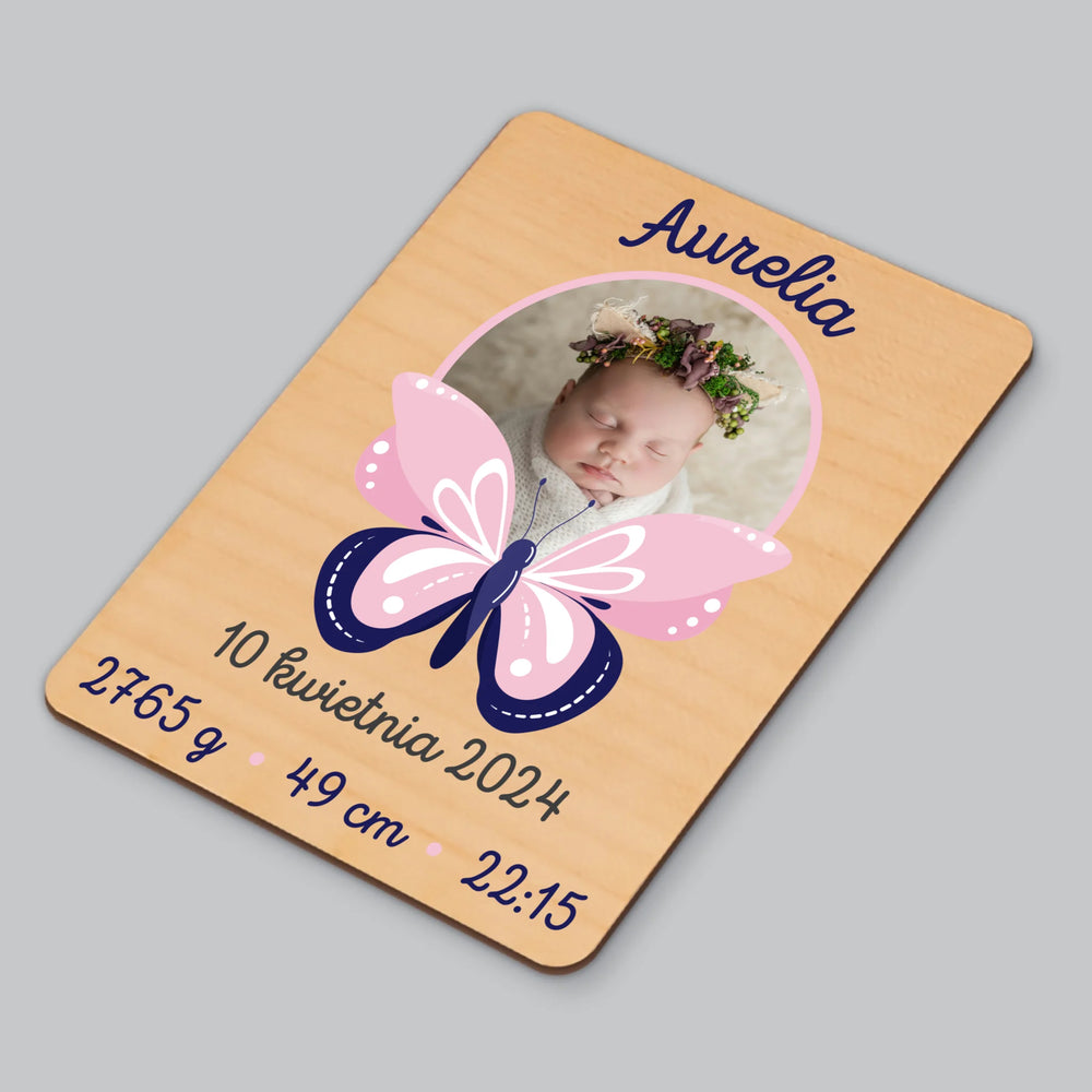Metryczka Dziecka: Motylek - Magnes drewniany