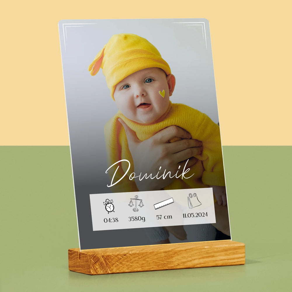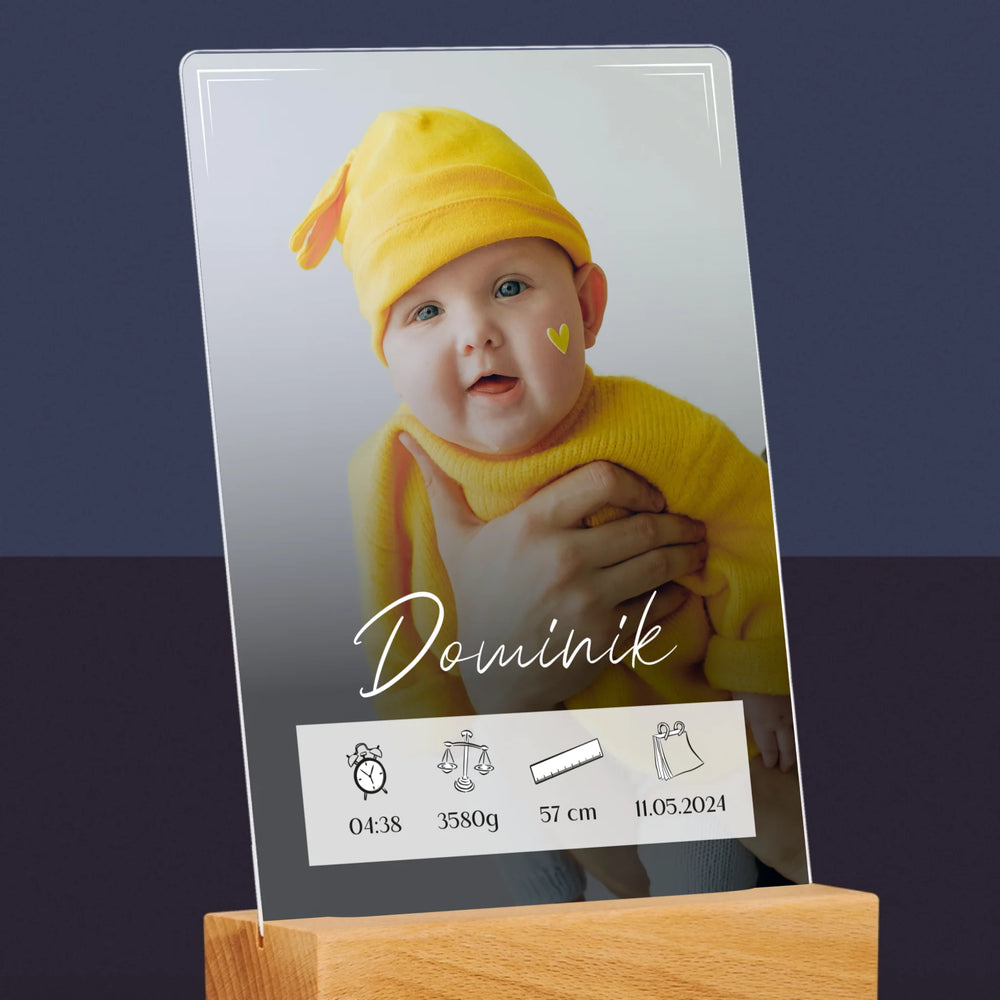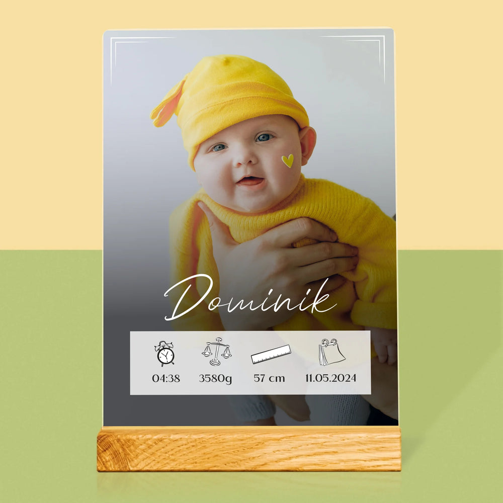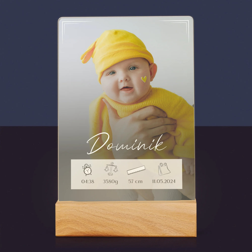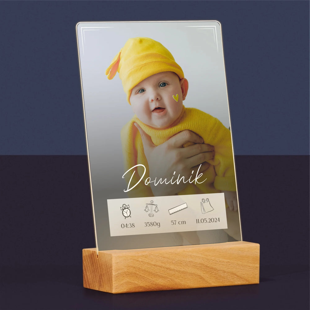 Metryczka Dziecka: Ramka - Wydruk na szkle akrylowym LED