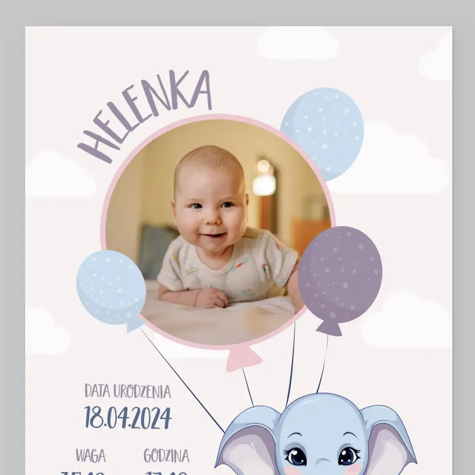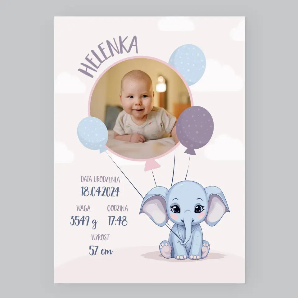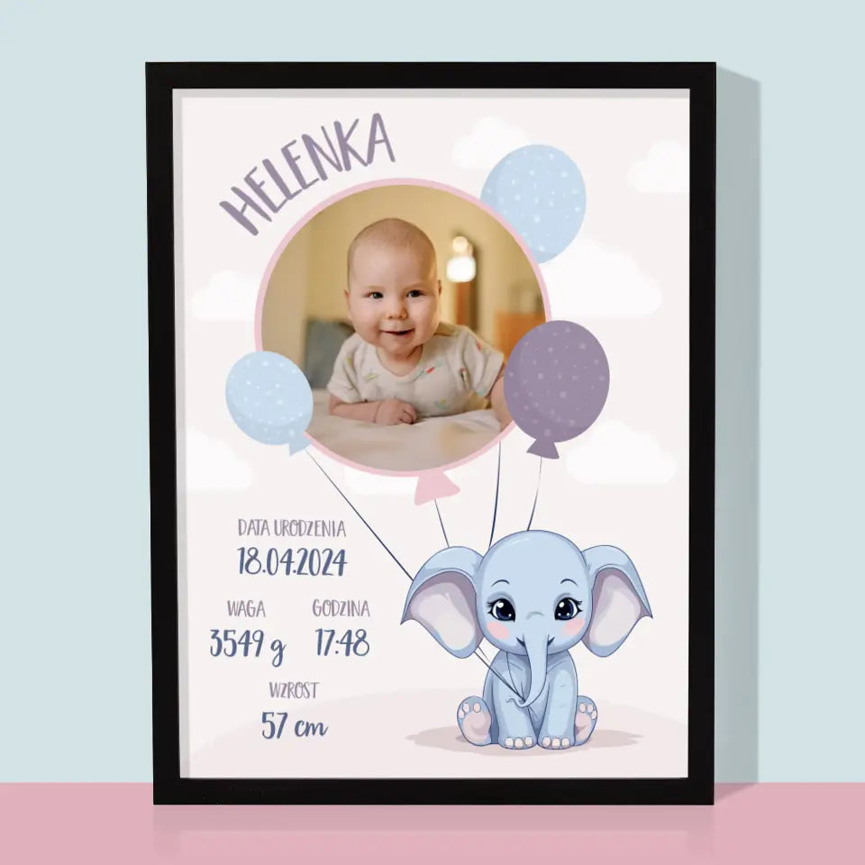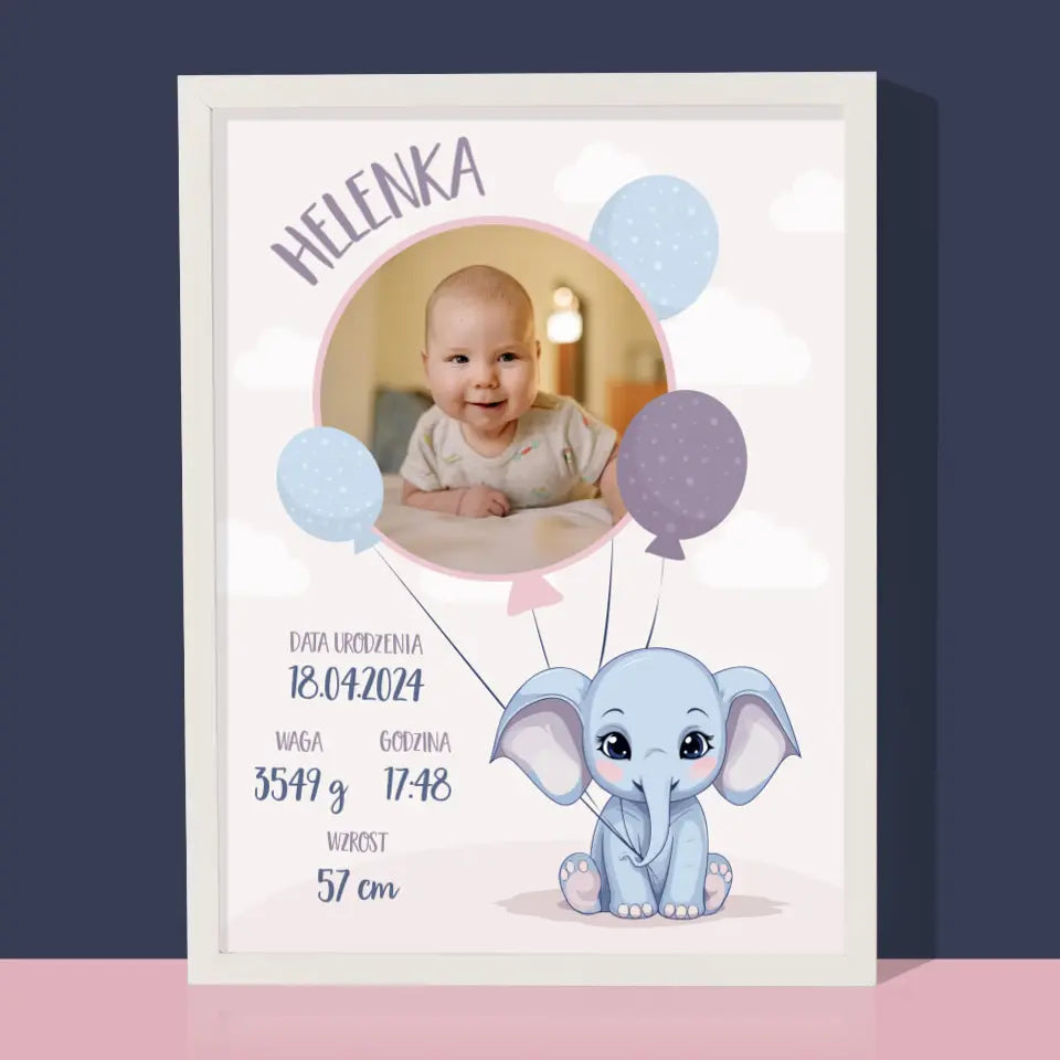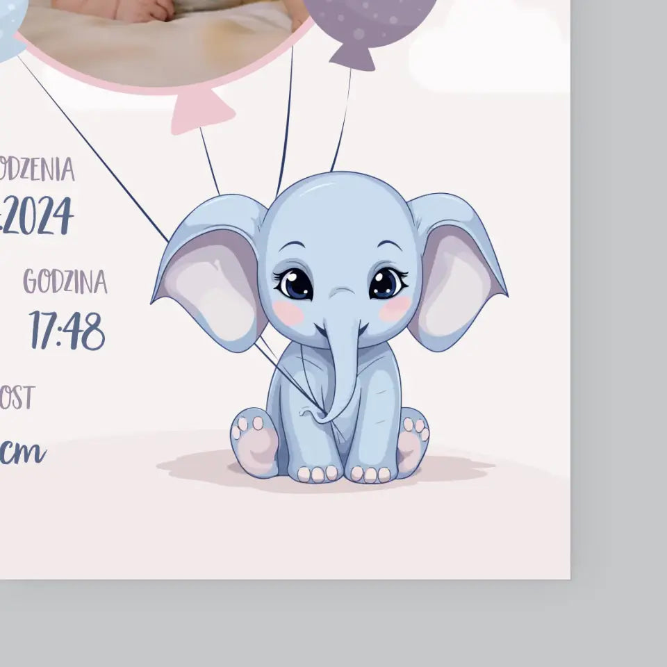 Metryczka Dziecka: Słonik - Produkt cyfrowy