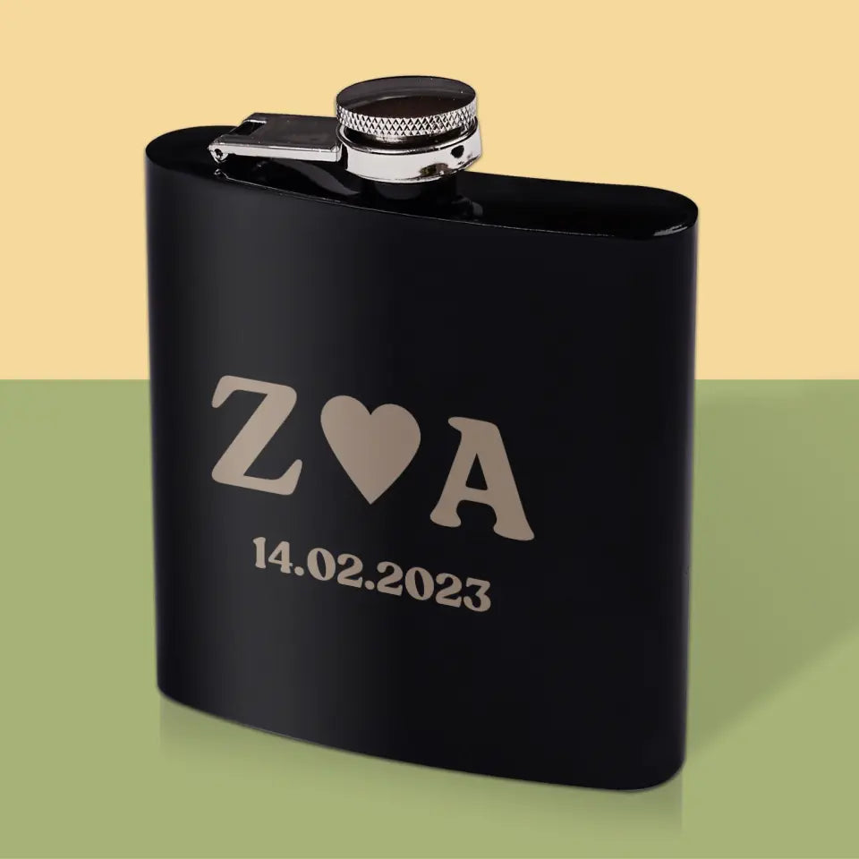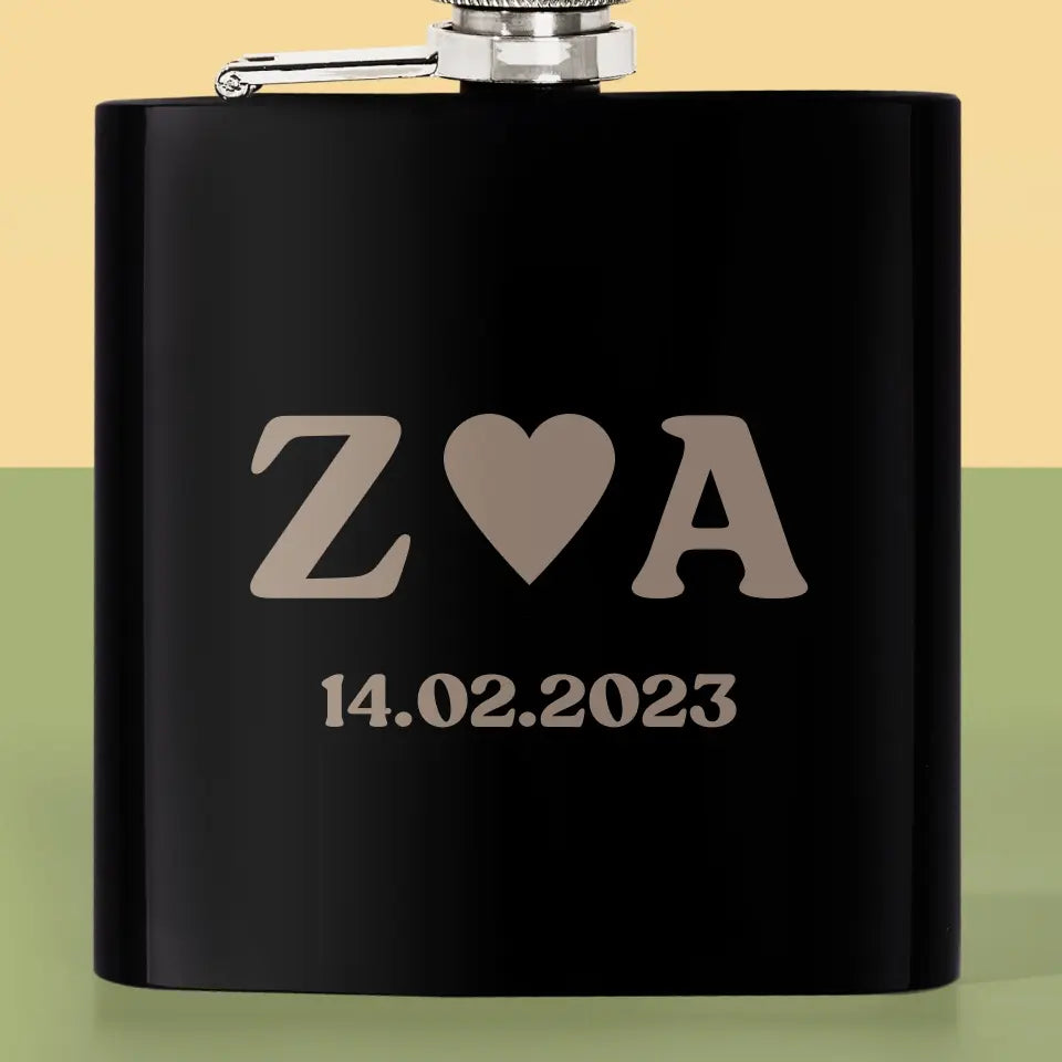 Monogram: Miłosne Inicjały z Datą - Piersiówka Metalowa z Grawerem