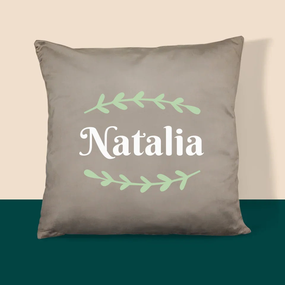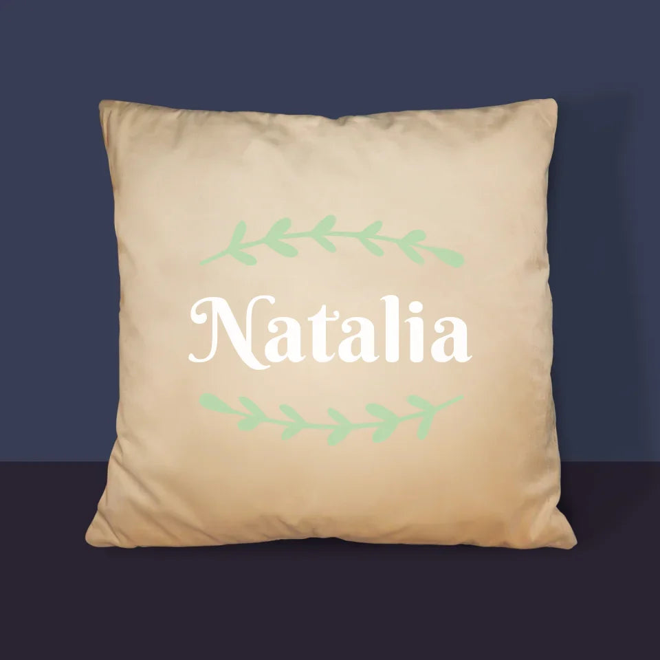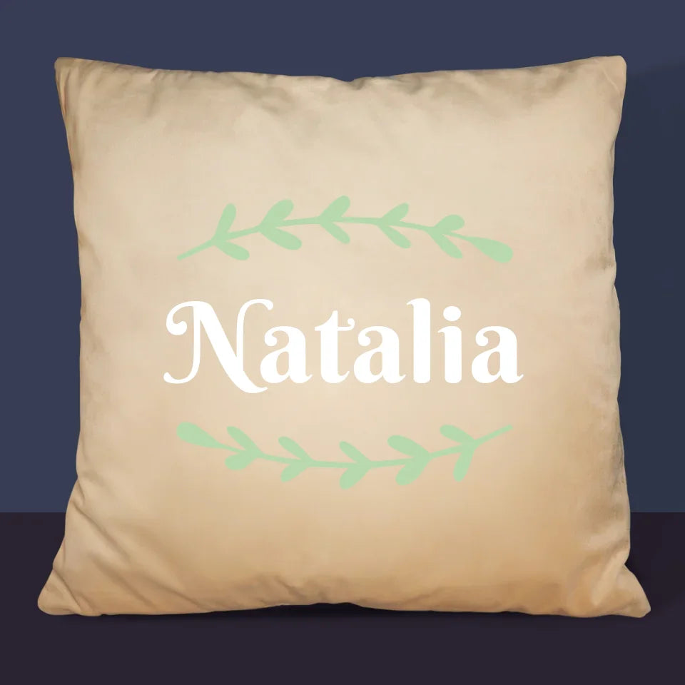 Monogram: Imię Listki - Poduszka z Nadrukiem