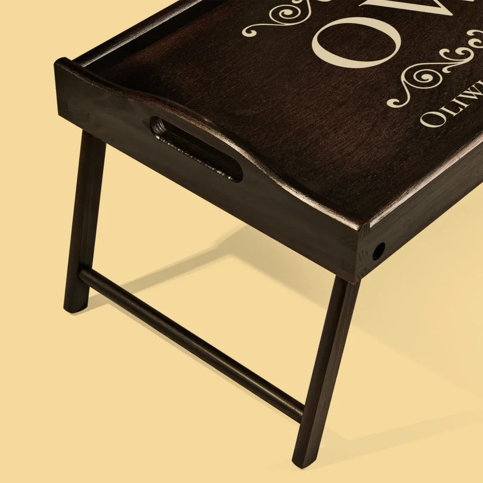 Drewniana taca śniadaniowa w kolorze ciemnego brązu z wybraną przez Ciebie personalizacją