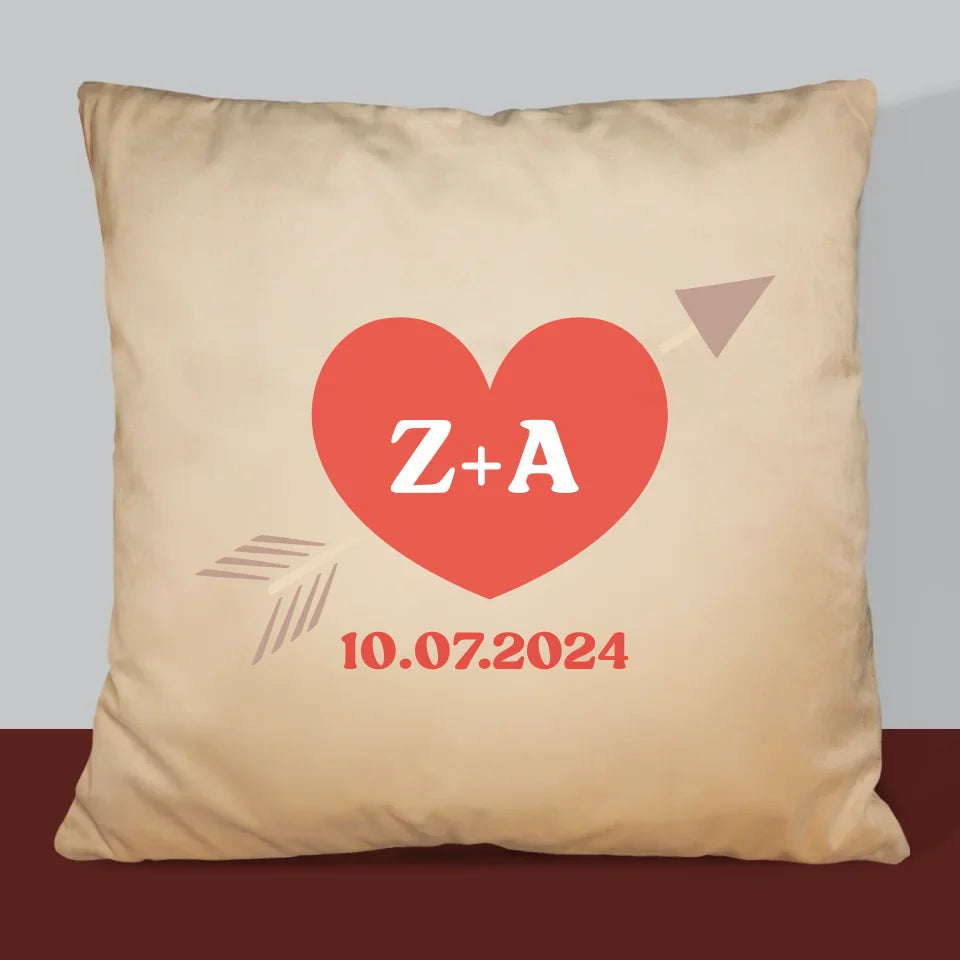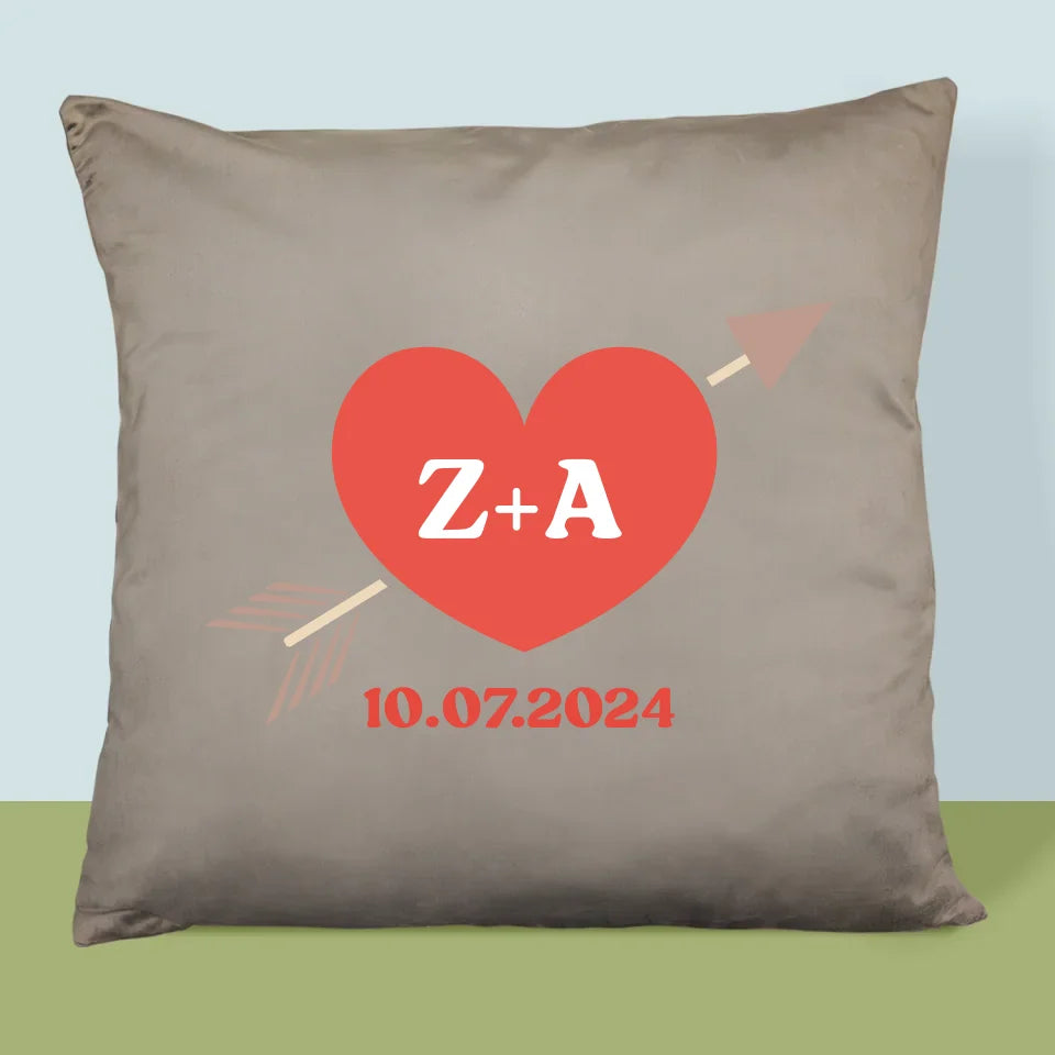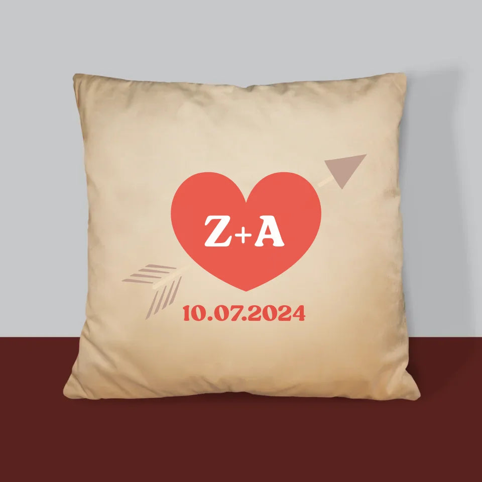 Monogram: Inicjały Serce Ze Strzałą - Poduszka z Nadrukiem