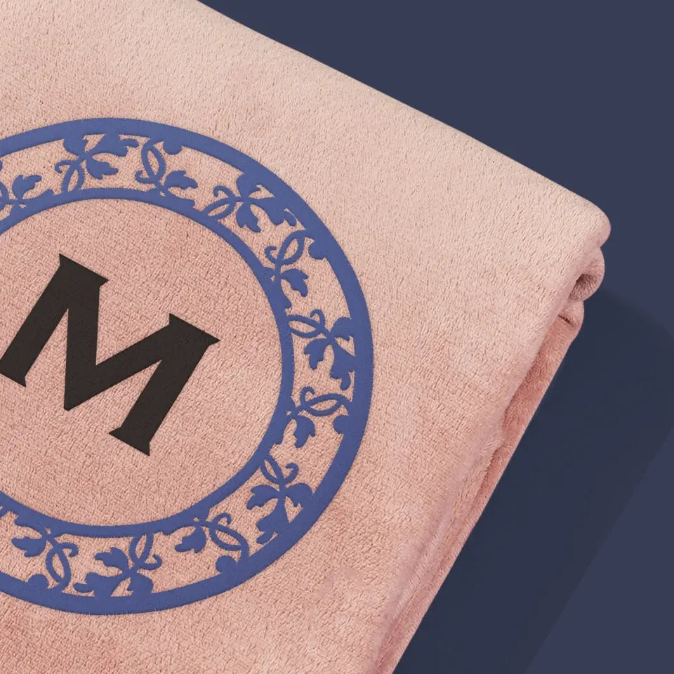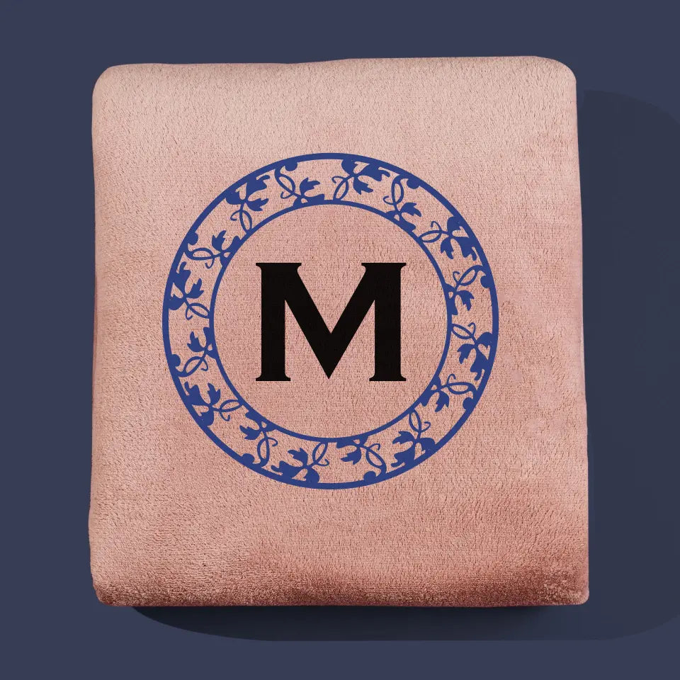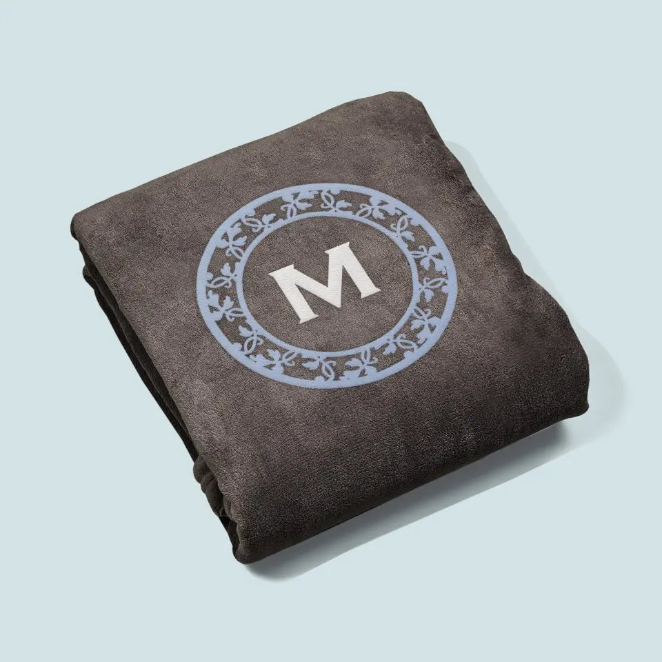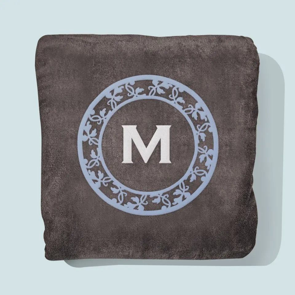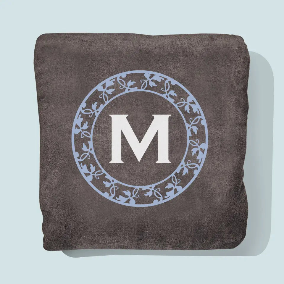 Monogram: Monogram Ramka Ornamenty - Personalizowany Koc Szary