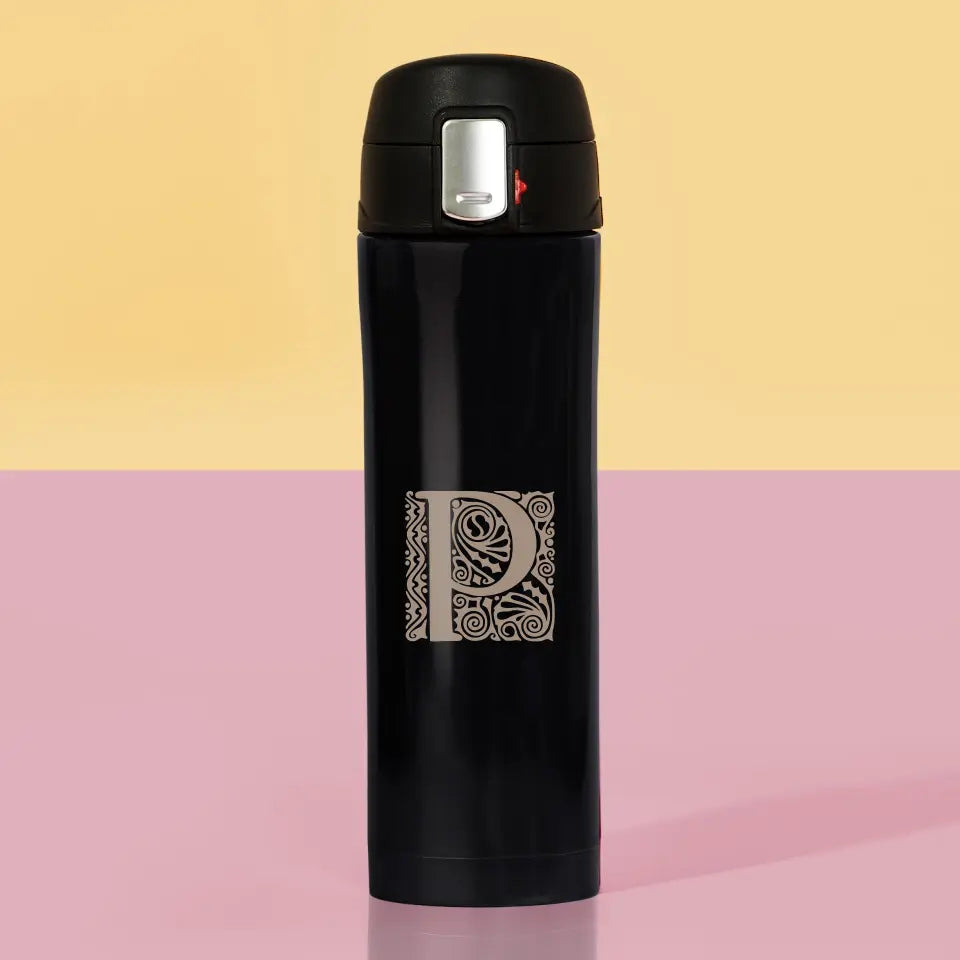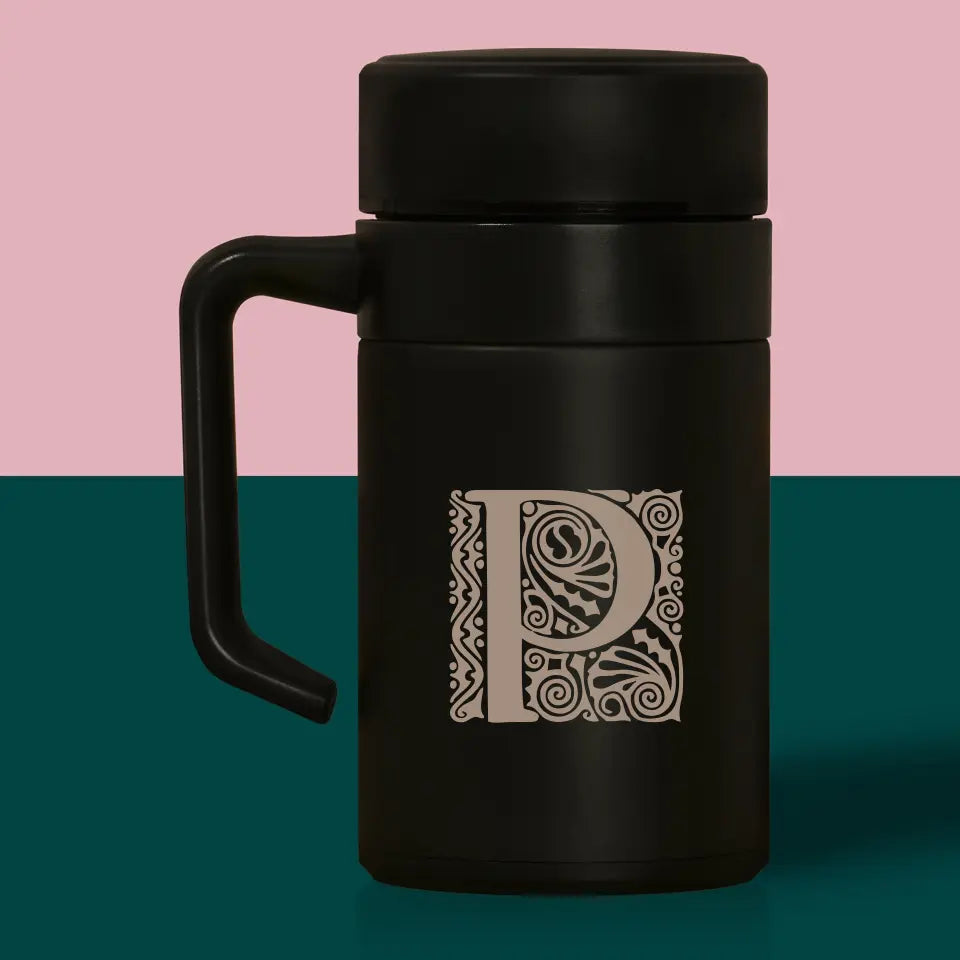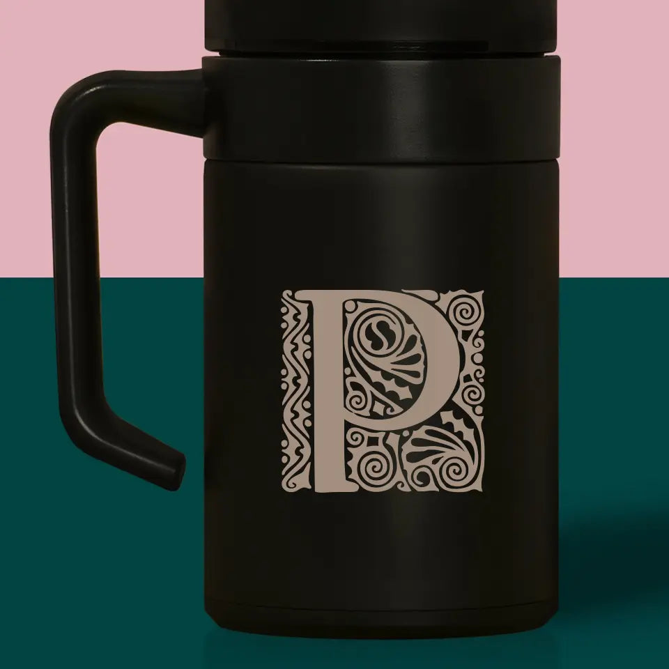 Wysokiej jakości kubek termiczny z wybraną przez Ciebie personalizacją w postaci monogramu.