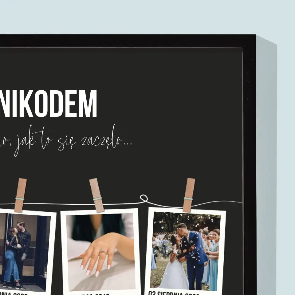 - Wydruk wykonujemy na wysokiej jakości papierze foto, który zostaje oprawiony w ramkę w wybranym kolorze: złotym, białym lub czarnym.