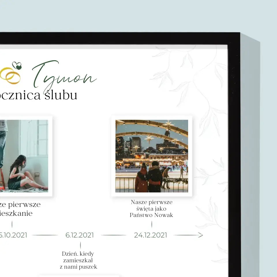 - Wydruk wykonujemy na wysokiej jakości papierze foto, który zostaje oprawiony w ramkę w wybranym kolorze: złotym, białym lub czarnym.