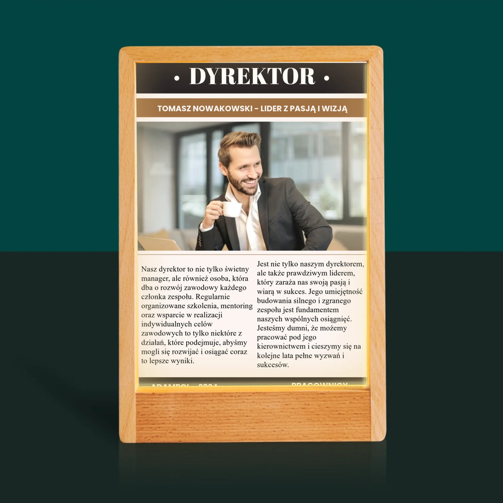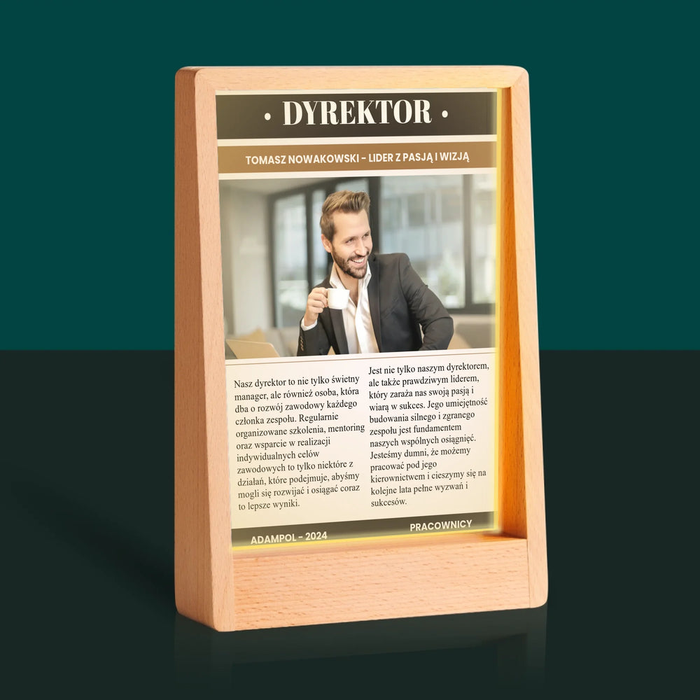 Okładka Magazynu: Dyrektor - Wydruk na szkle akrylowym w ramce LED