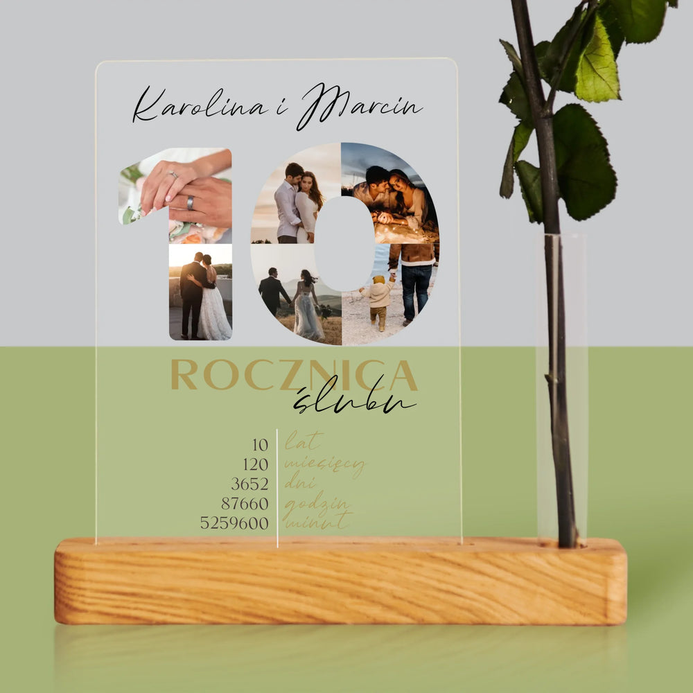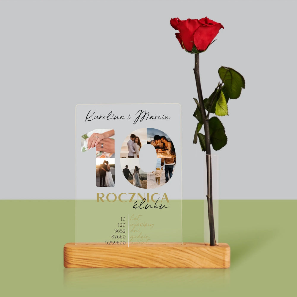 Słowo Ze Zdjęć: 10 Rocznica Ślubu - Wydruk na szkle akrylowym z różą