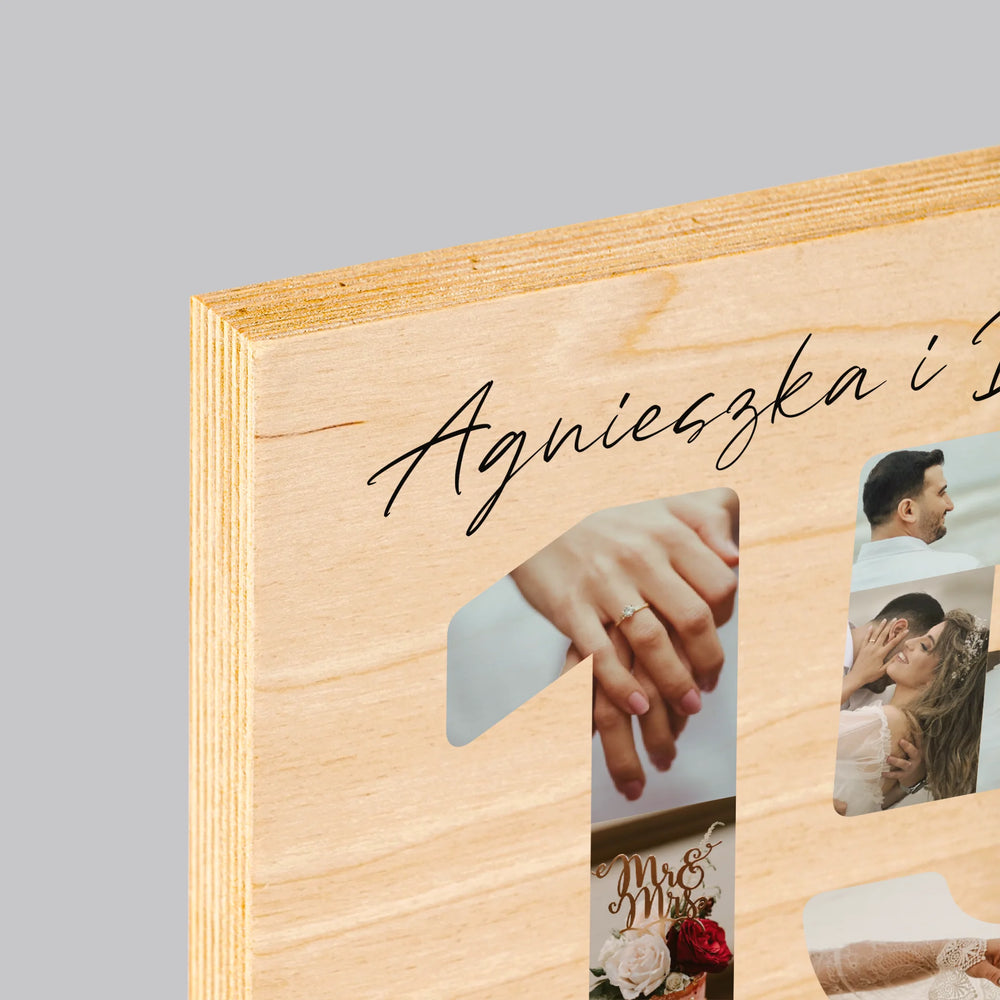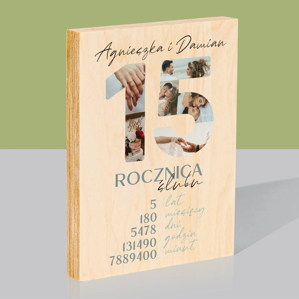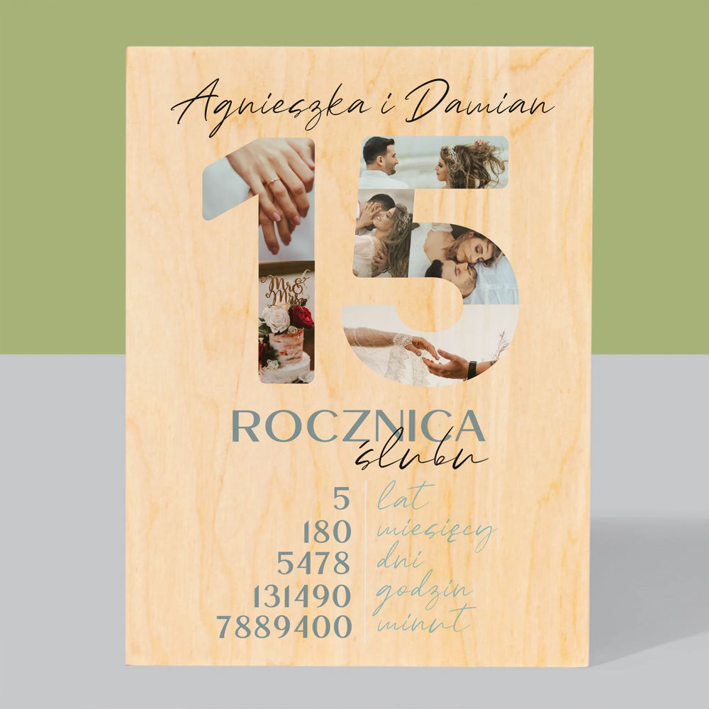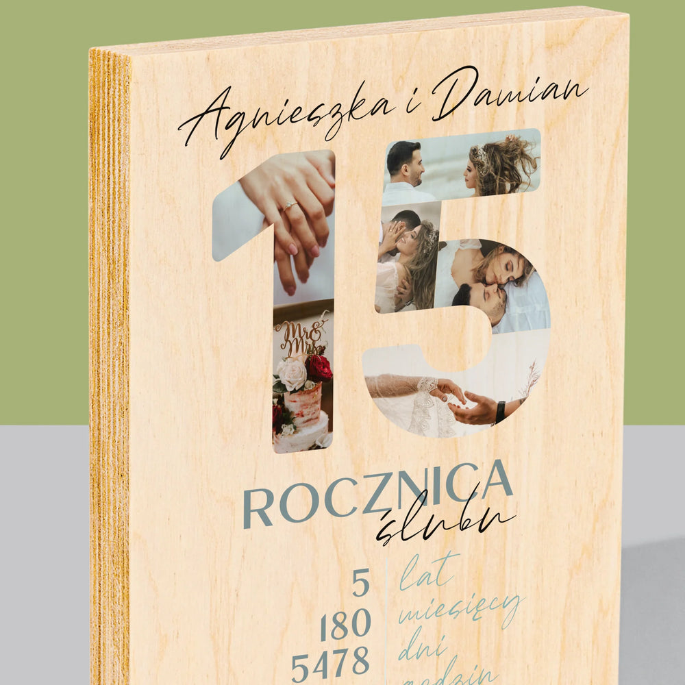 Słowo Ze Zdjęć: 15 Rocznica Ślubu - Wydruk na drewnie - Pion