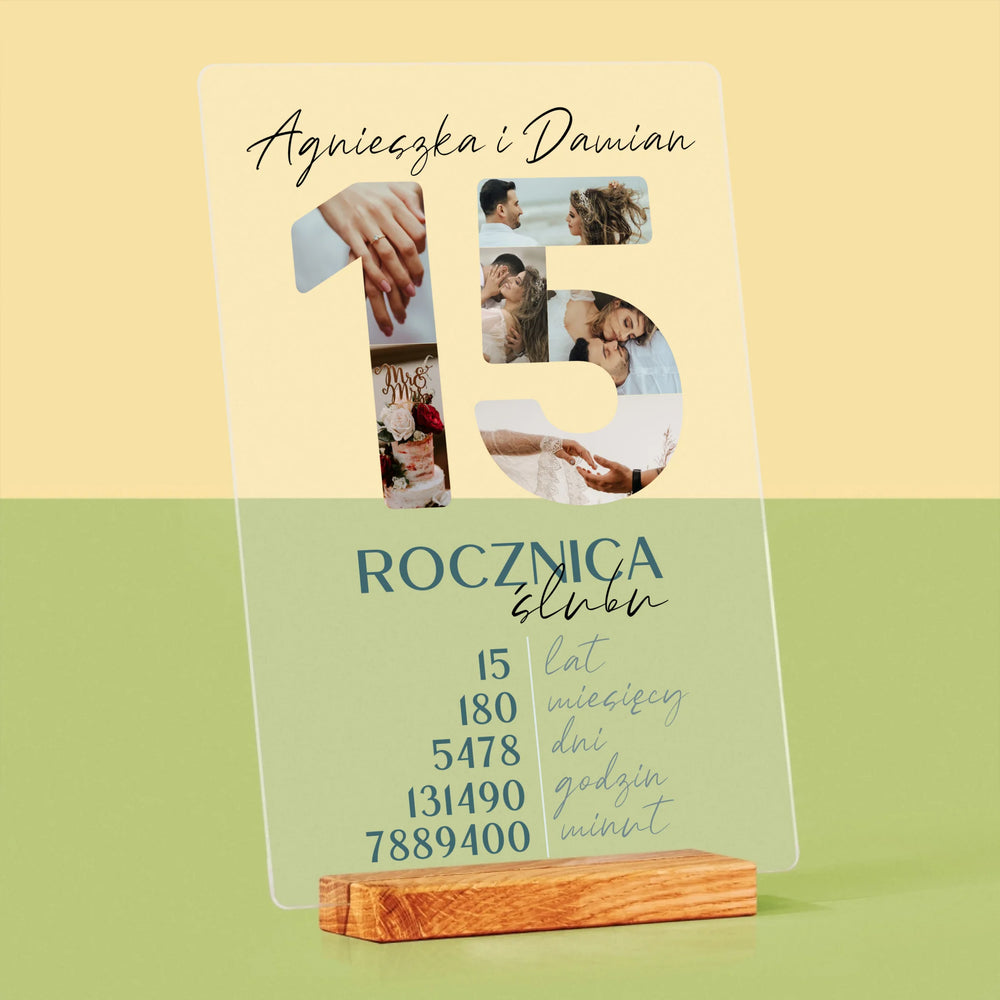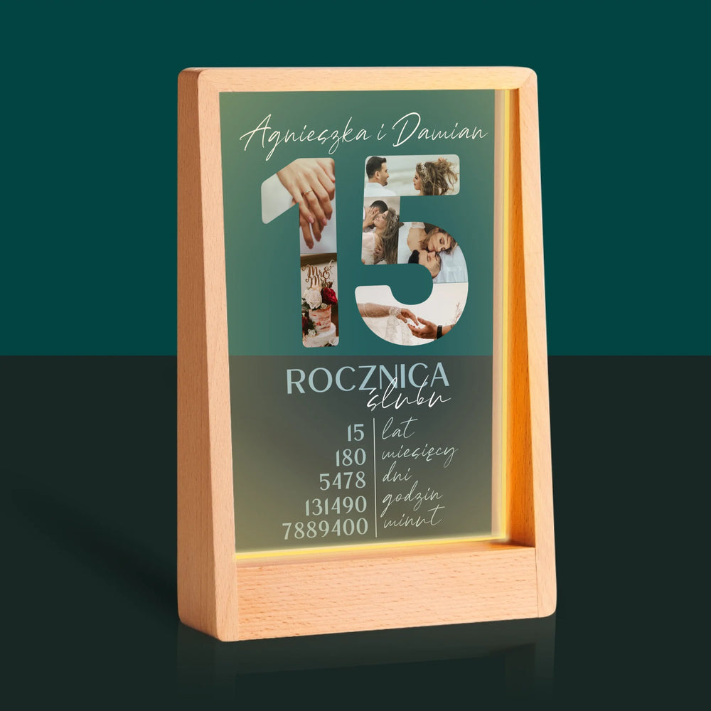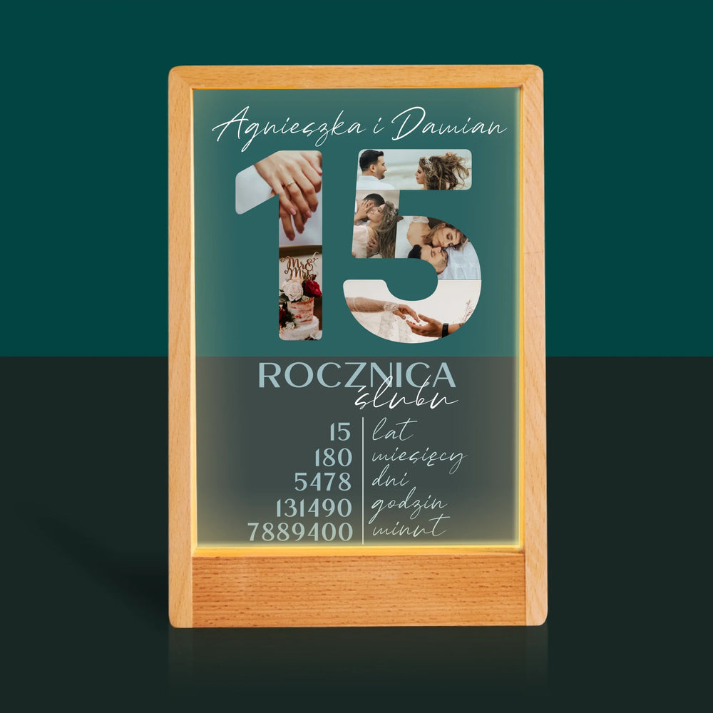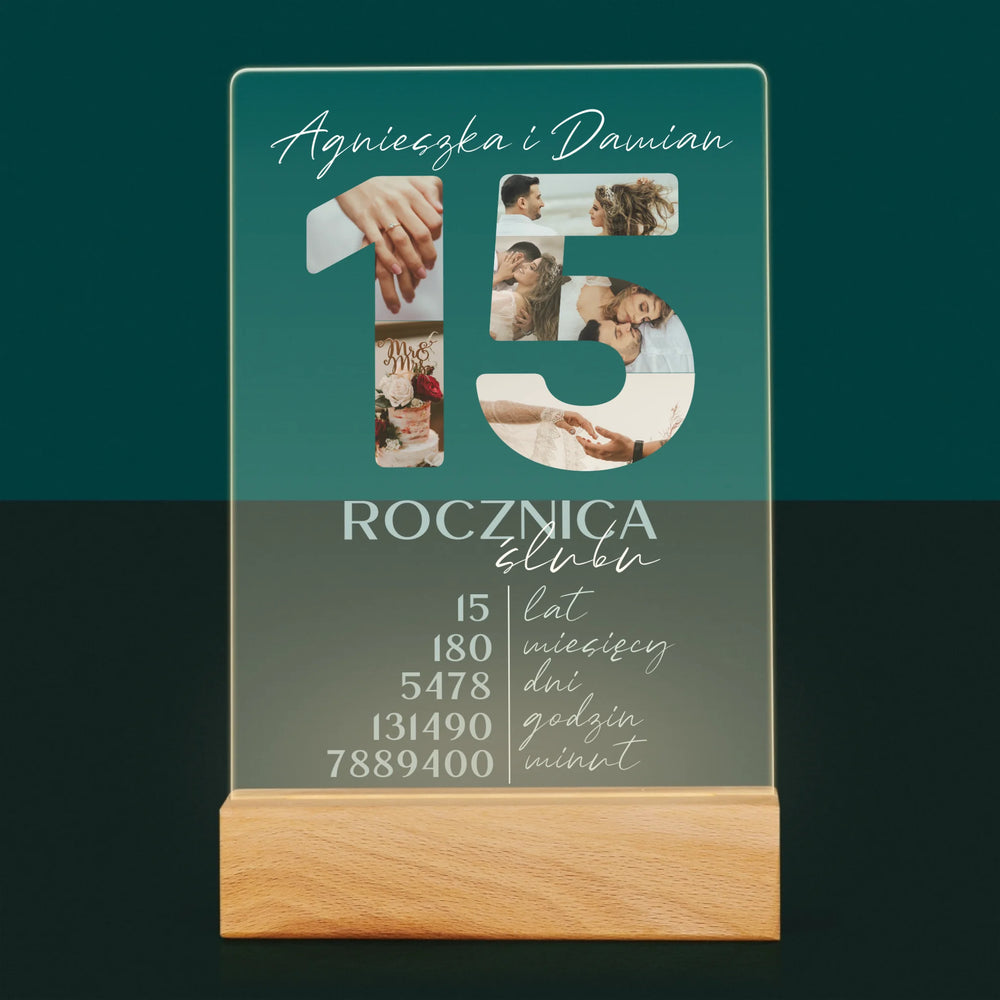 Słowo Ze Zdjęć: 15 Rocznica Ślubu - Wydruk na szkle akrylowym w ramce LED