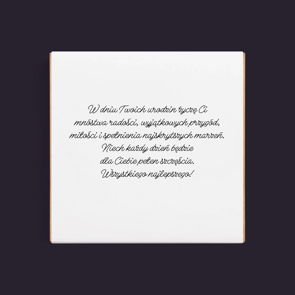 • Efektowny nadruk z personalizacją znajduje się na specjalnej obwolucie prezentowej.