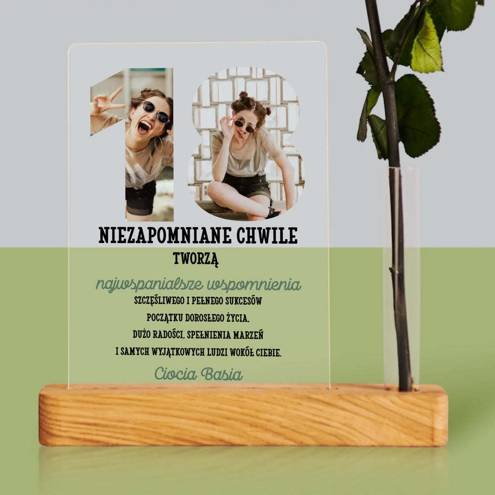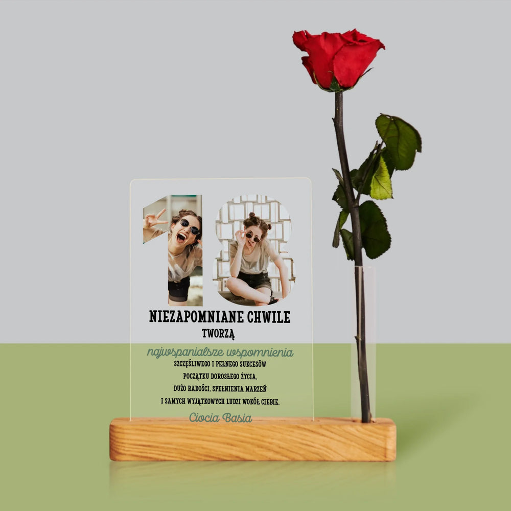 Słowo Ze Zdjęć: 18 Urodziny - Wydruk na szkle akrylowym z różą
