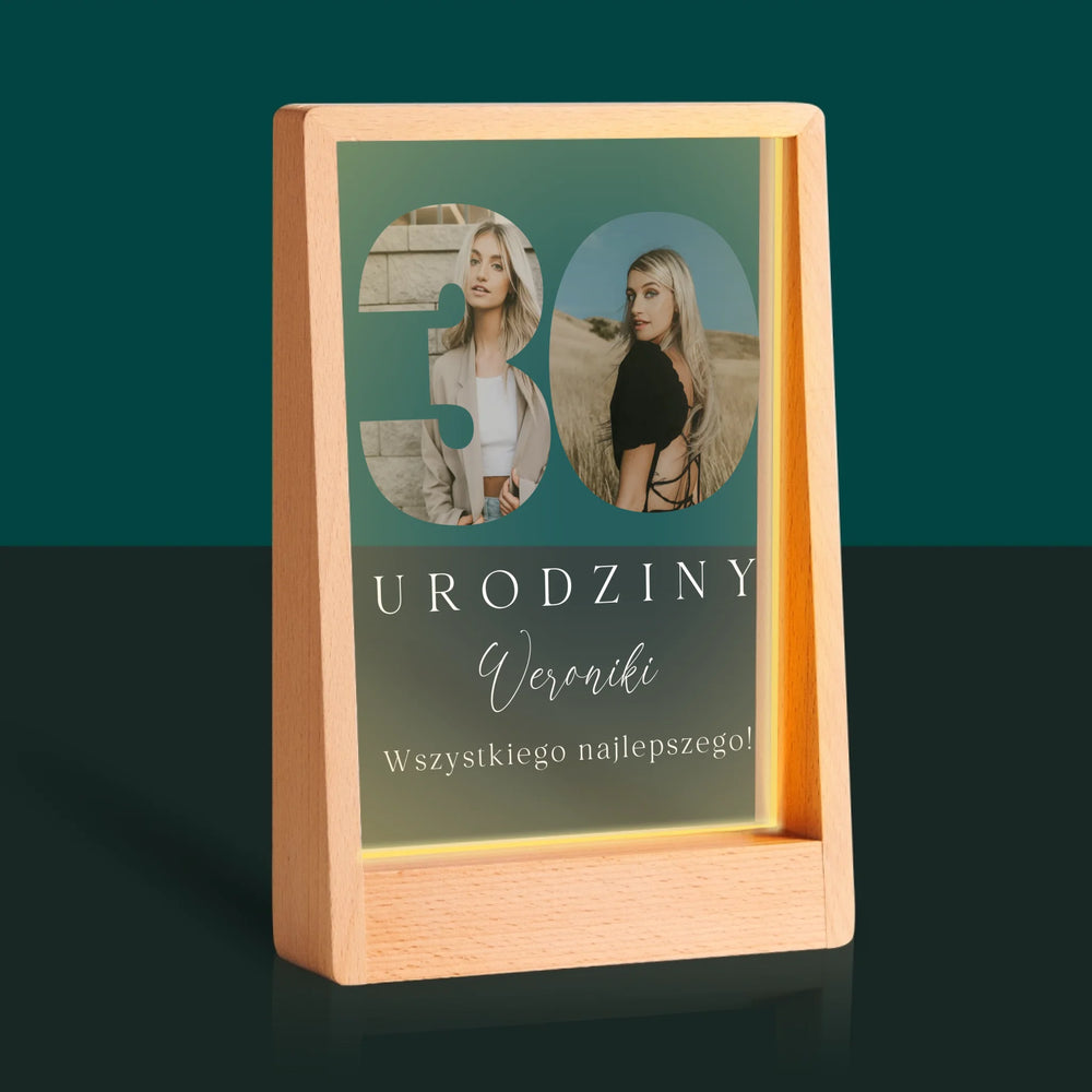 Słowo Ze Zdjęć: 30 Urodziny Podpis - Wydruk na szkle akrylowym w ramce LED