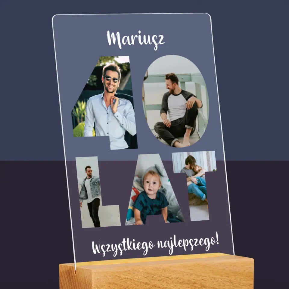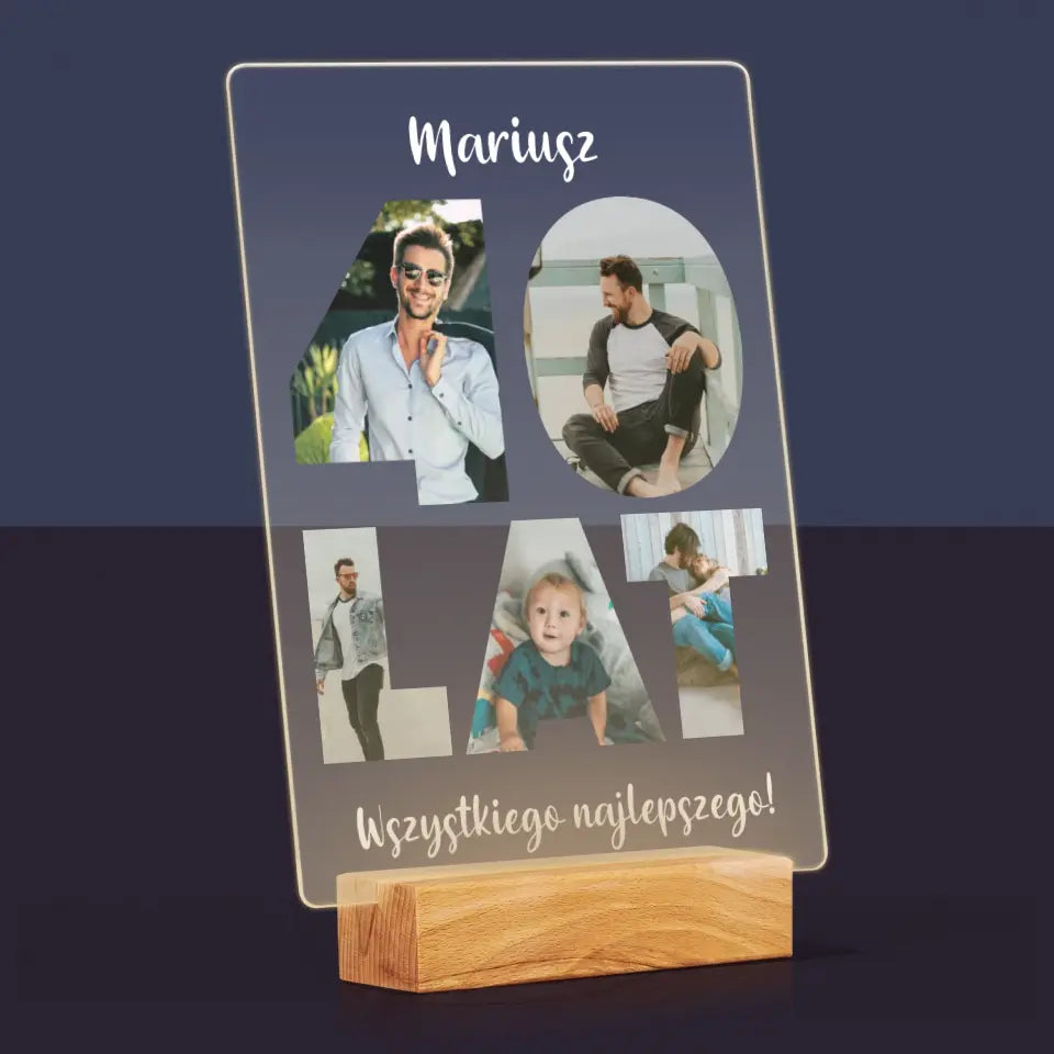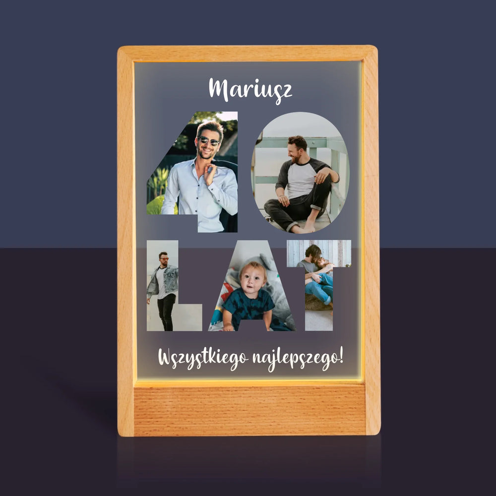 Słowo Ze Zdjęć: 40 Lat - Wydruk na szkle akrylowym w ramce LED