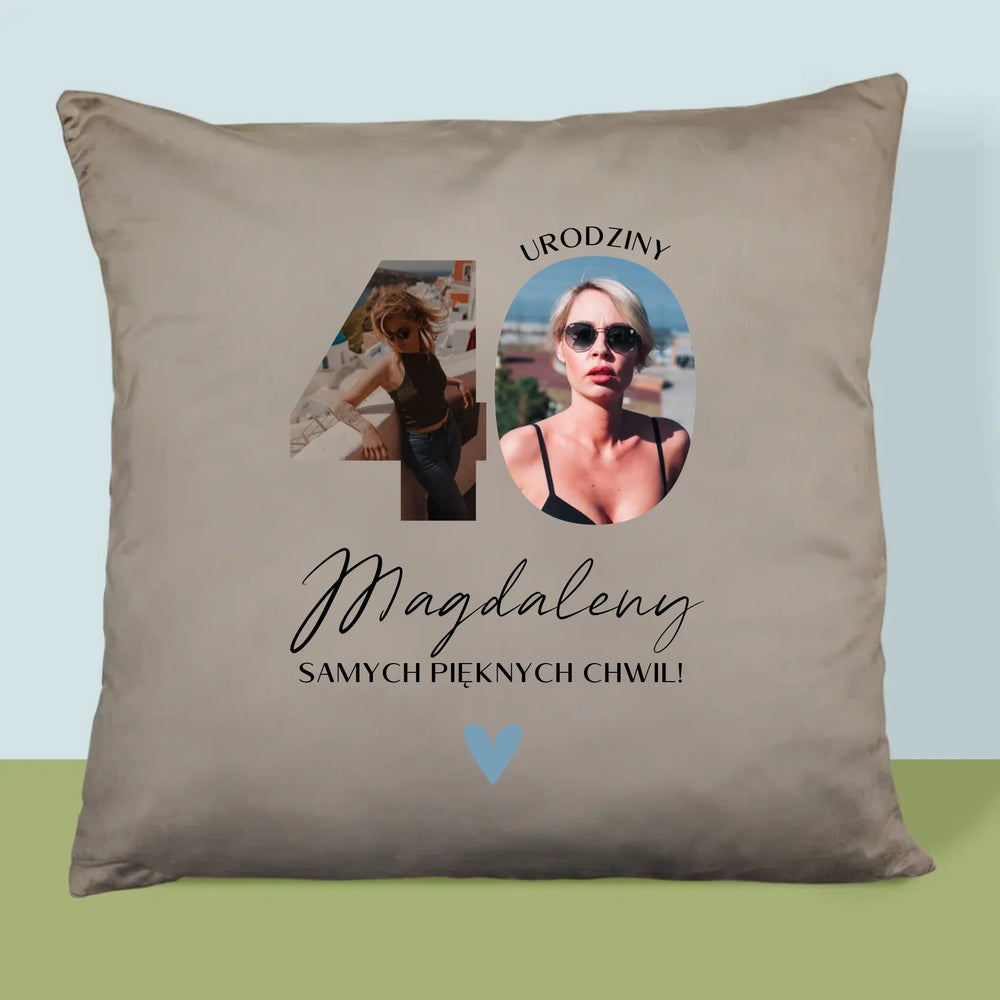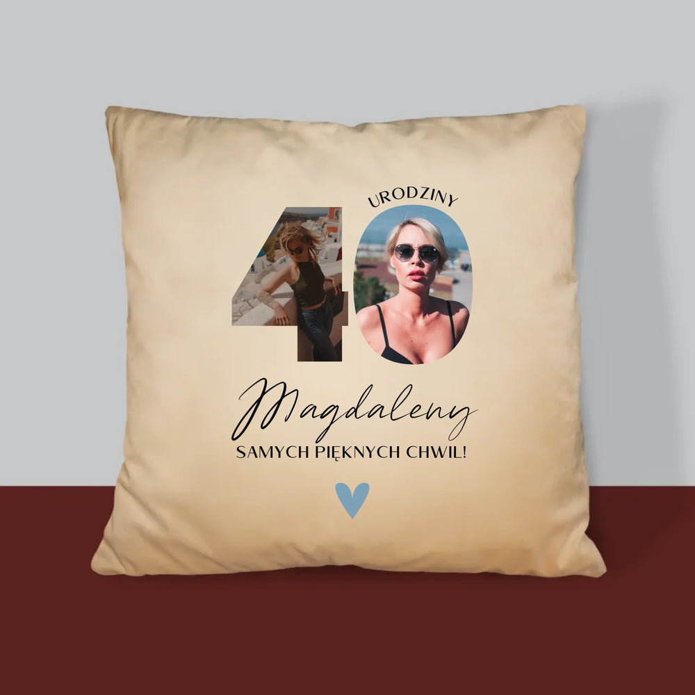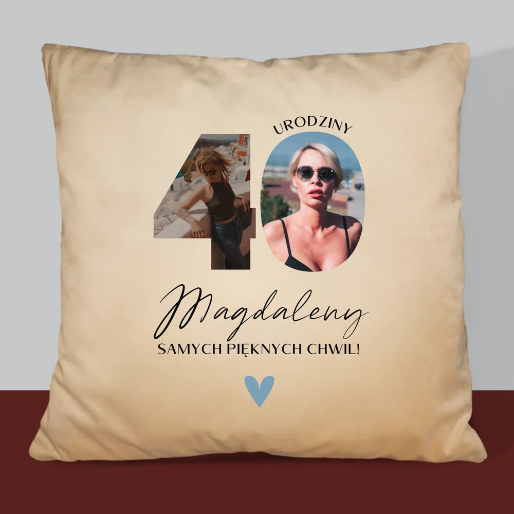 Słowo Ze Zdjęć: 40 Urodziny Piękne Chwile - Poduszka z Nadrukiem