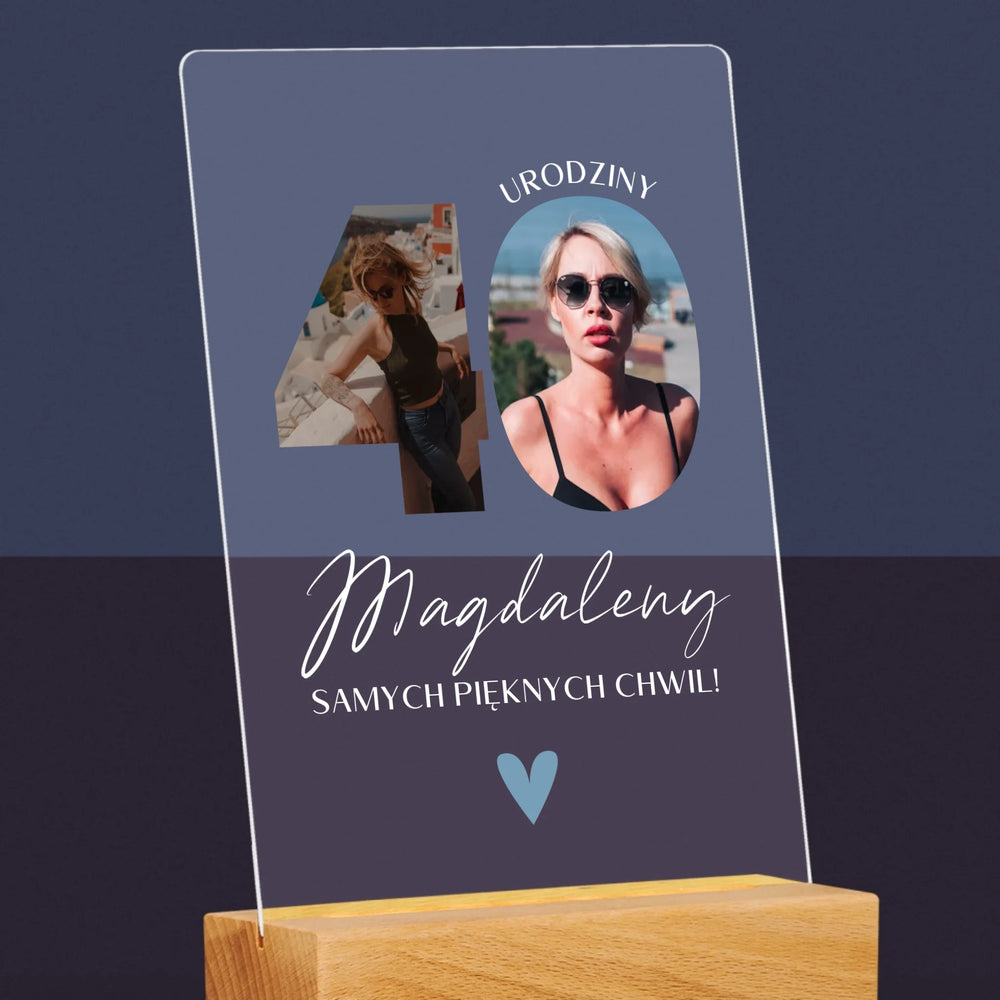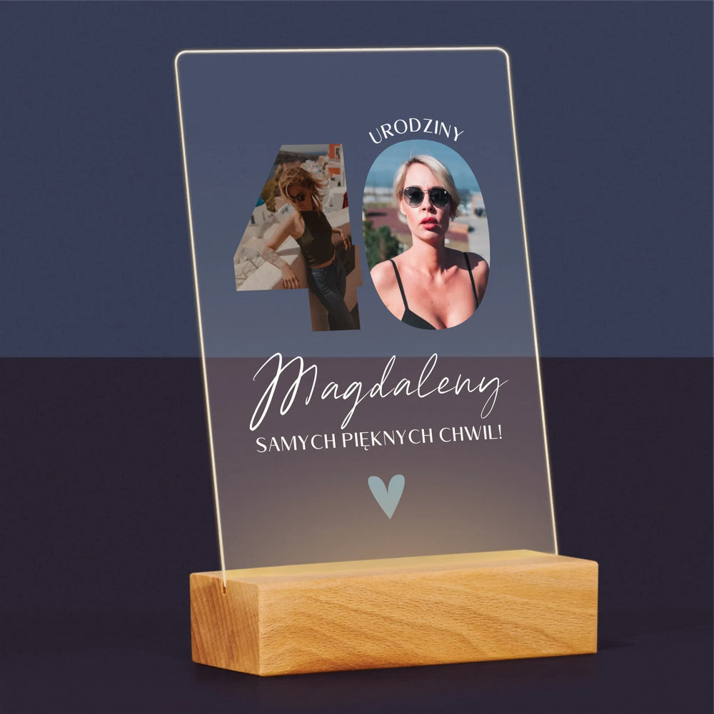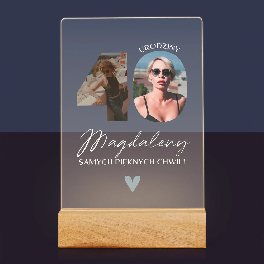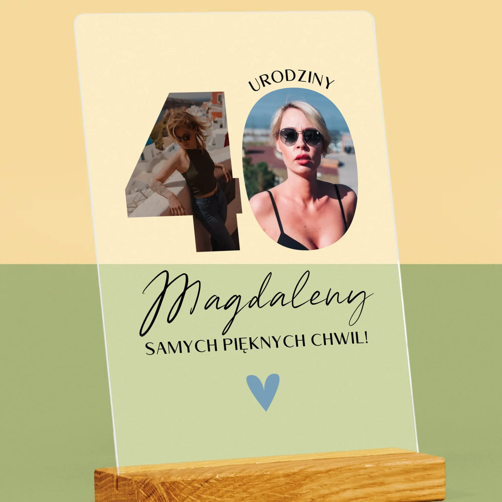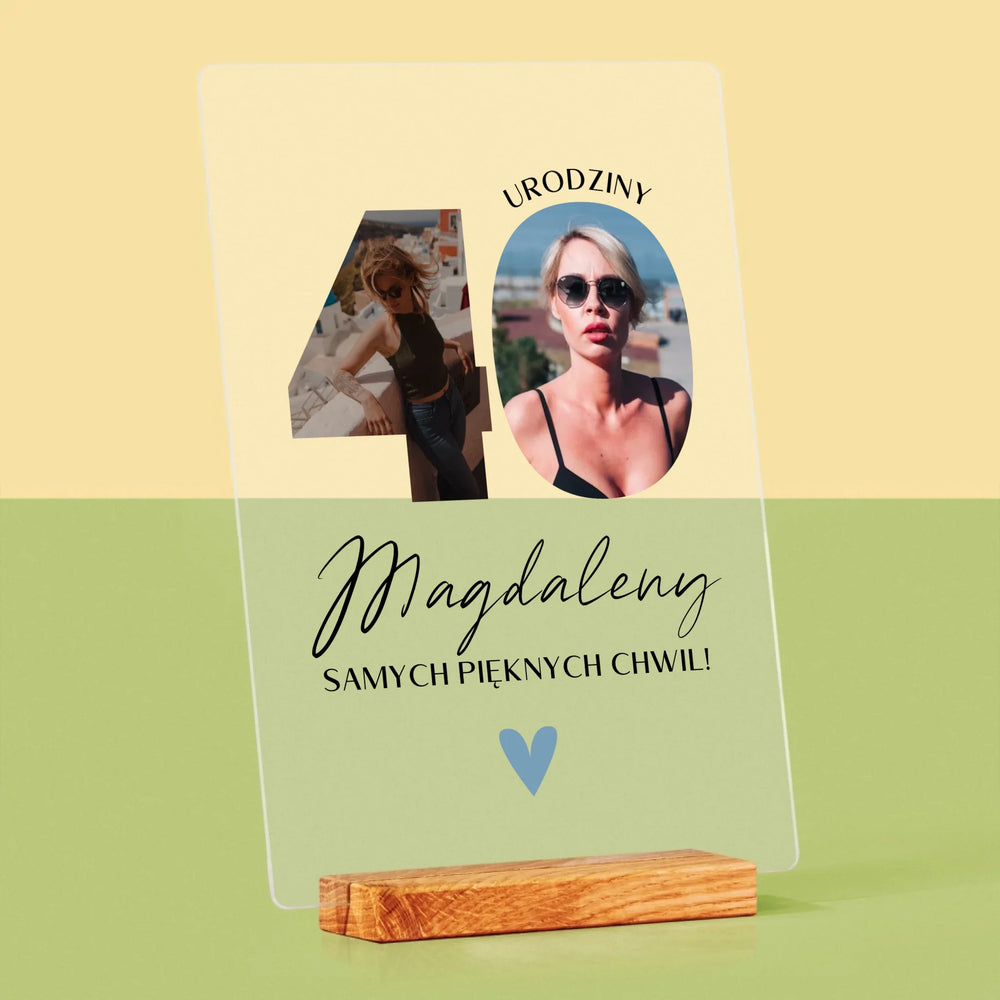 Słowo Ze Zdjęć: 40 Urodziny Piękne Chwile - Wydruk na szkle akrylowym