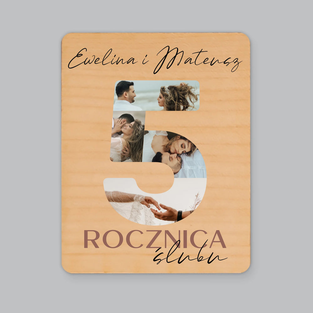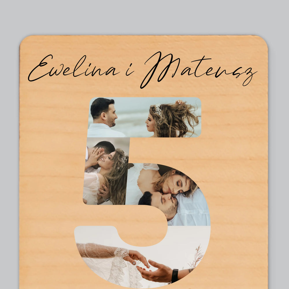 Słowo Ze Zdjęć: 5 Rocznica Ślubu Liczby - Magnes drewniany