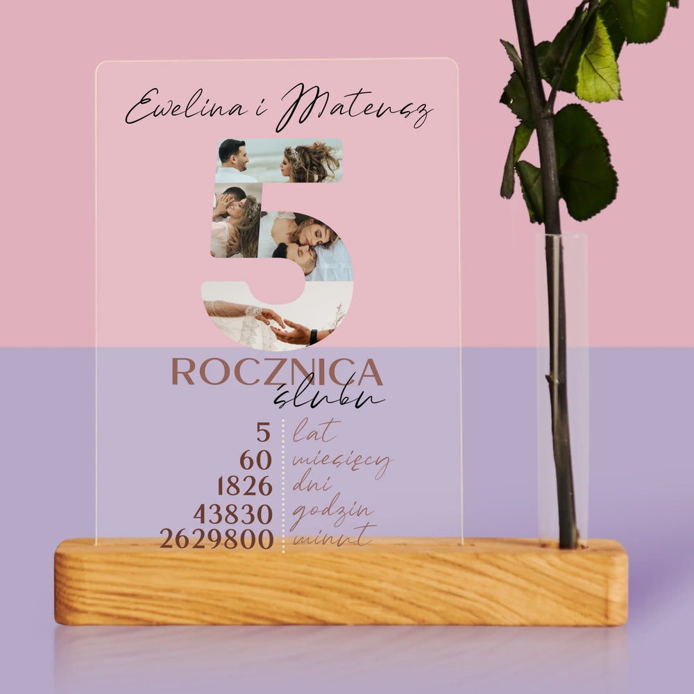 Słowo Ze Zdjęć: 5 Rocznica Ślubu Liczby - Wydruk na szkle akrylowym z różą