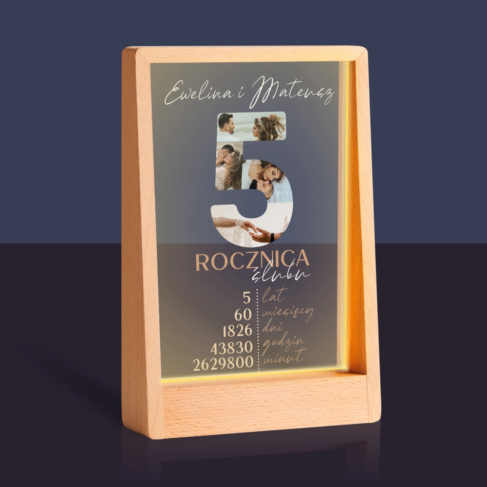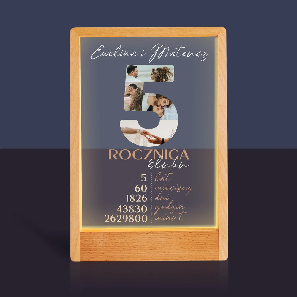 Słowo Ze Zdjęć: 5 Rocznica Ślubu Liczby - Wydruk na szkle akrylowym w ramce LED