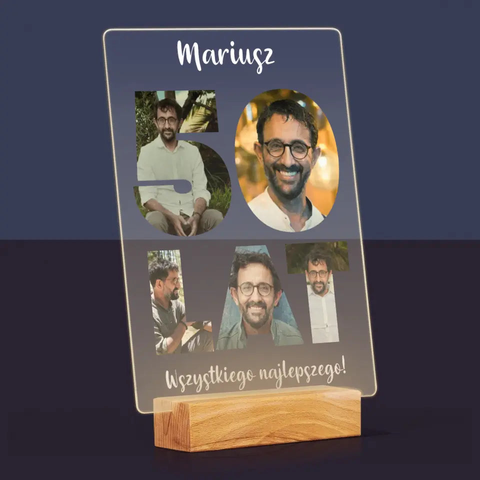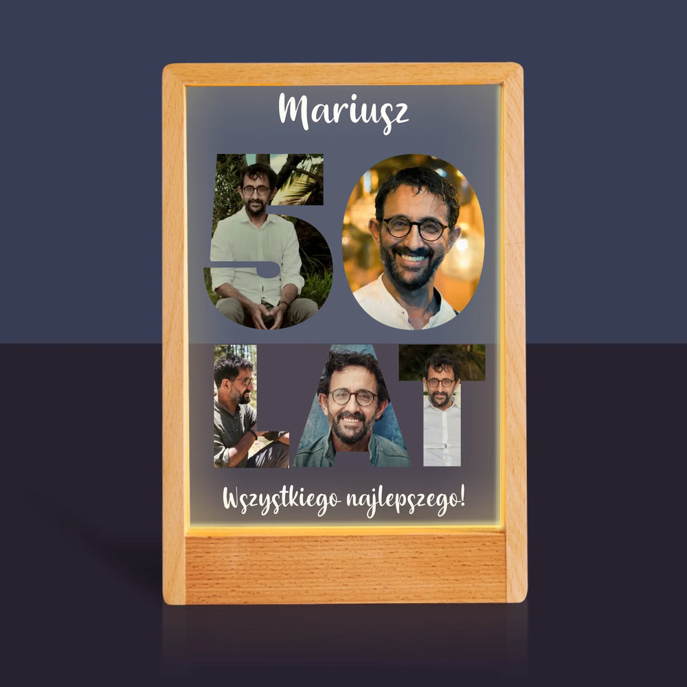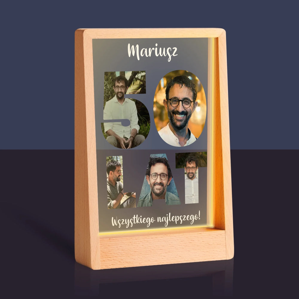 Słowo Ze Zdjęć: 50 Lat - Wydruk na szkle akrylowym w ramce LED