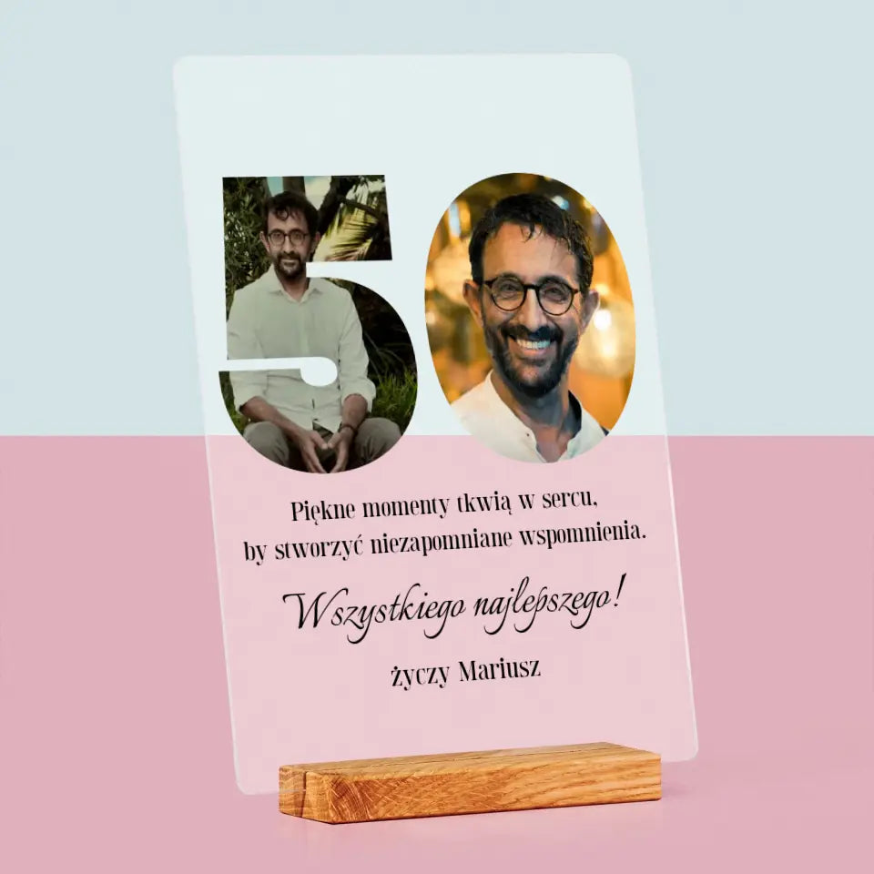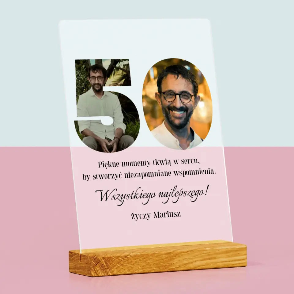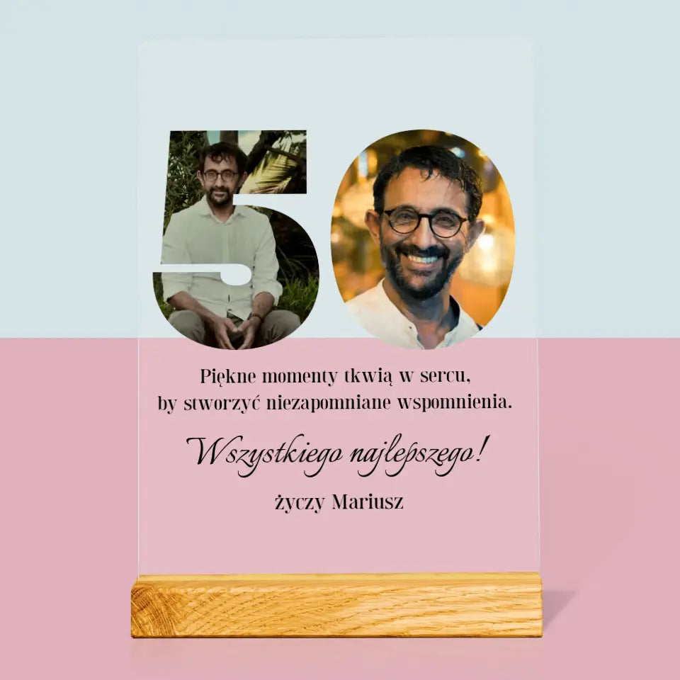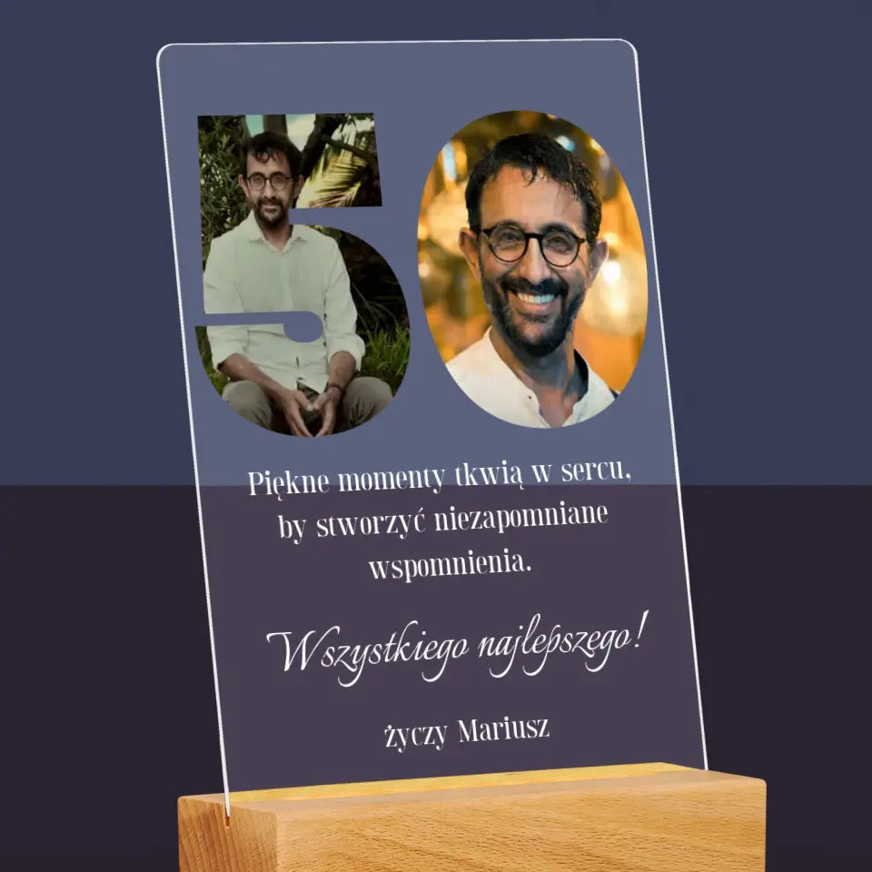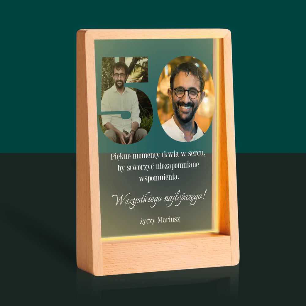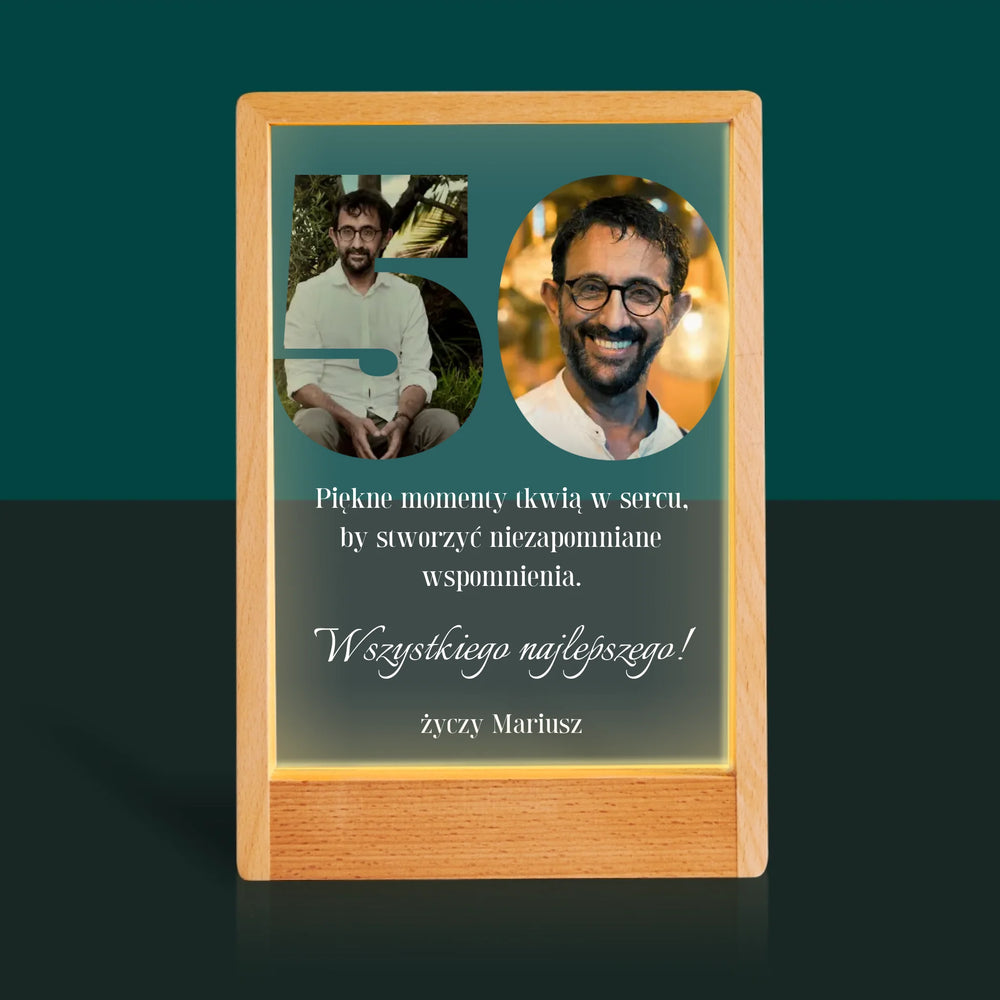 Słowo Ze Zdjęć: 50 Urodziny - Wydruk na szkle akrylowym w ramce LED