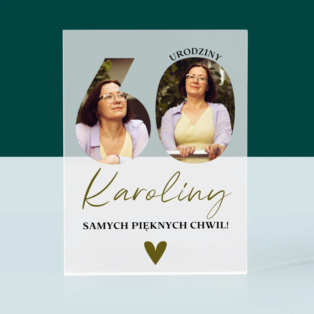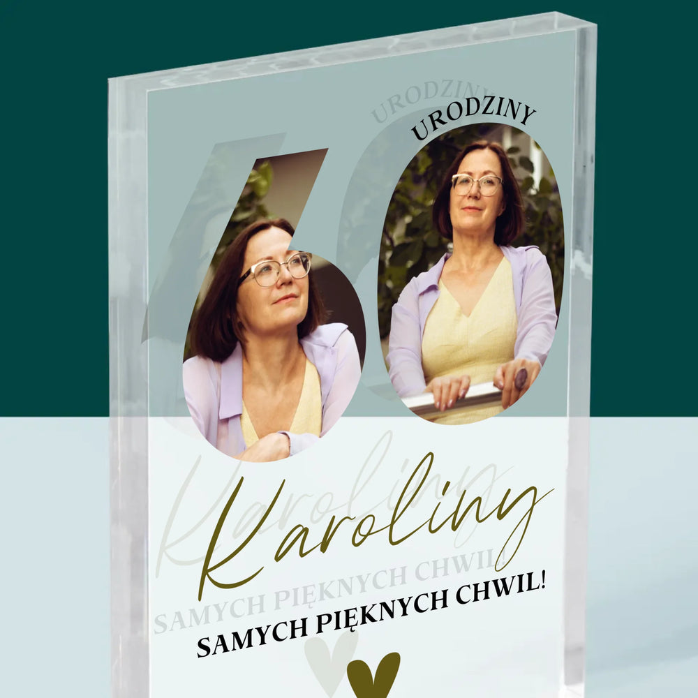 Słowo Ze Zdjęć: 60 Urodziny Samych Pięknych Chwil - Blok Akrylowy z Nadrukiem