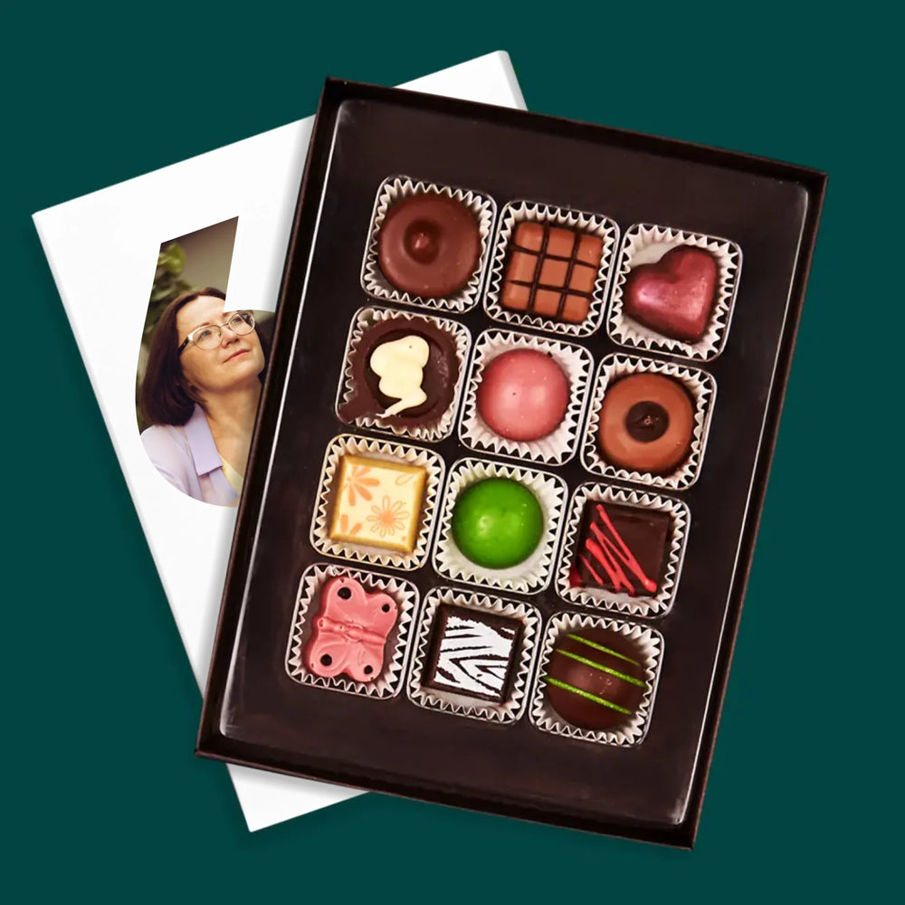 Pyszne praliny z belgijskiej czekolady w eleganckim pudełku z wybraną przez Ciebie personalizacją.