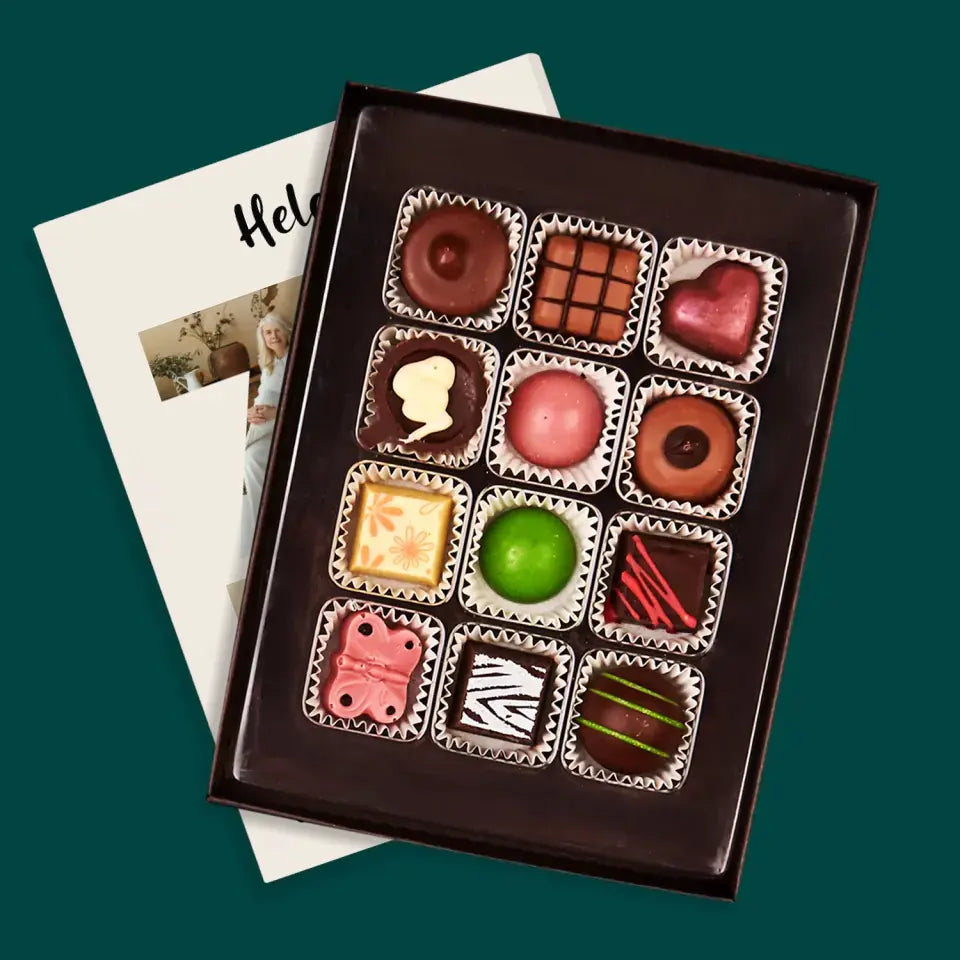 Pyszne praliny z belgijskiej czekolady w eleganckim pudełku z wybraną przez Ciebie personalizacją.