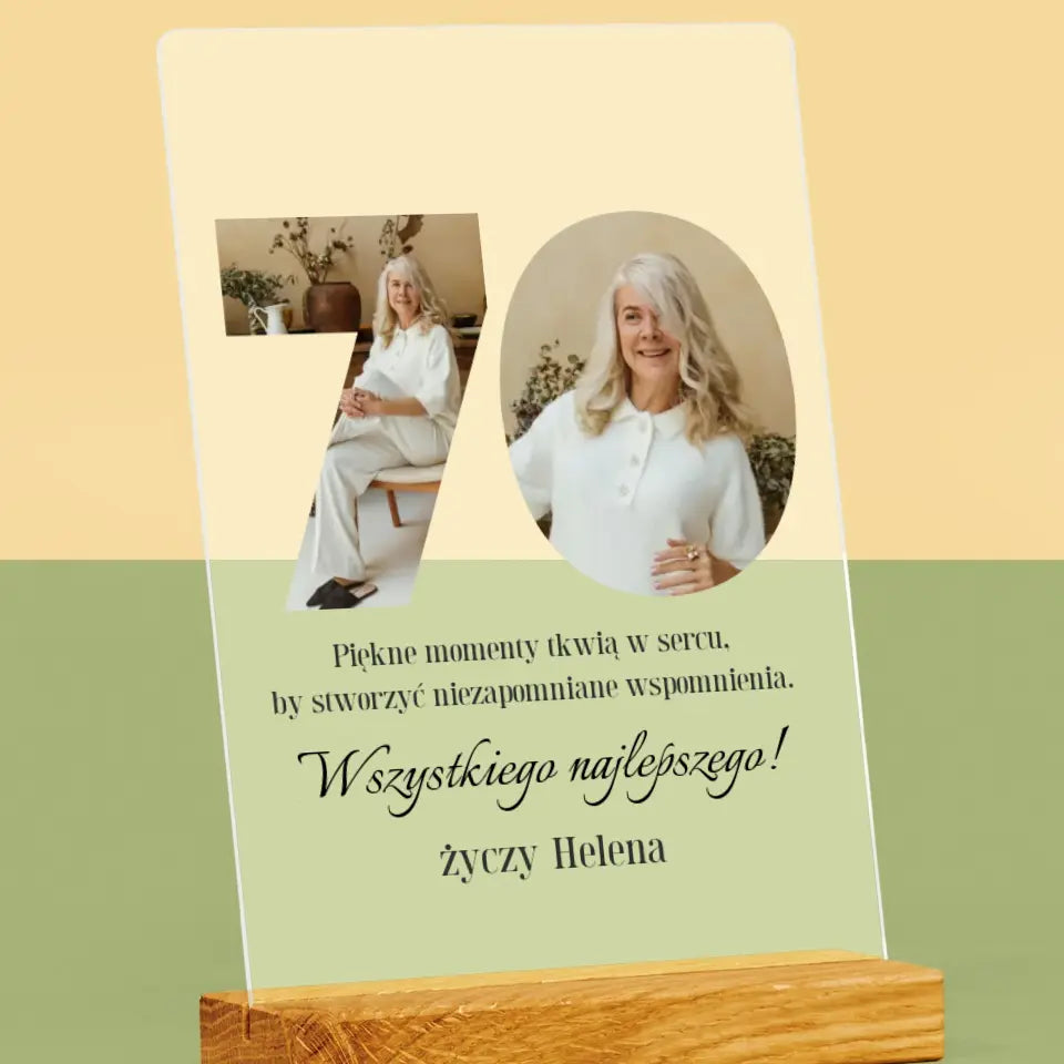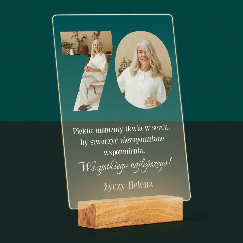 Słowo Ze Zdjęć: 70 Urodziny - Wydruk na szkle akrylowym LED