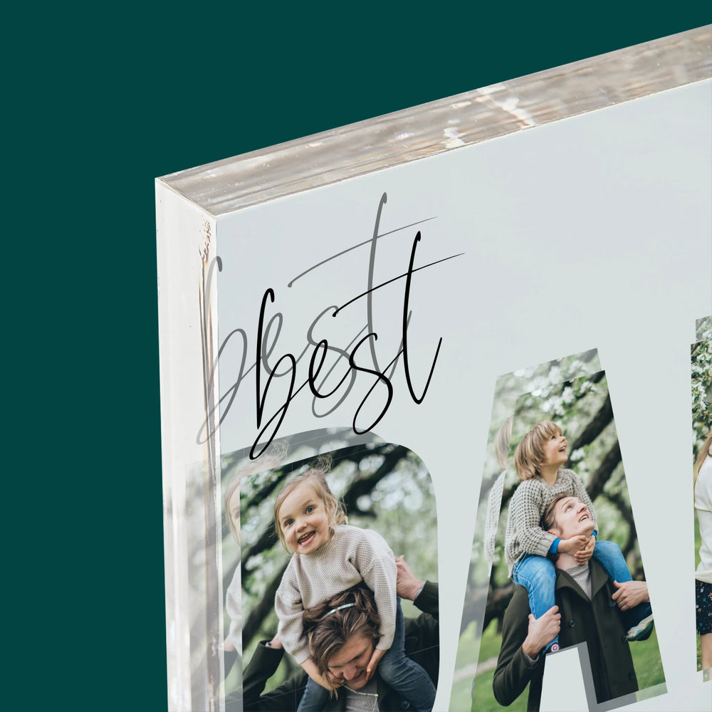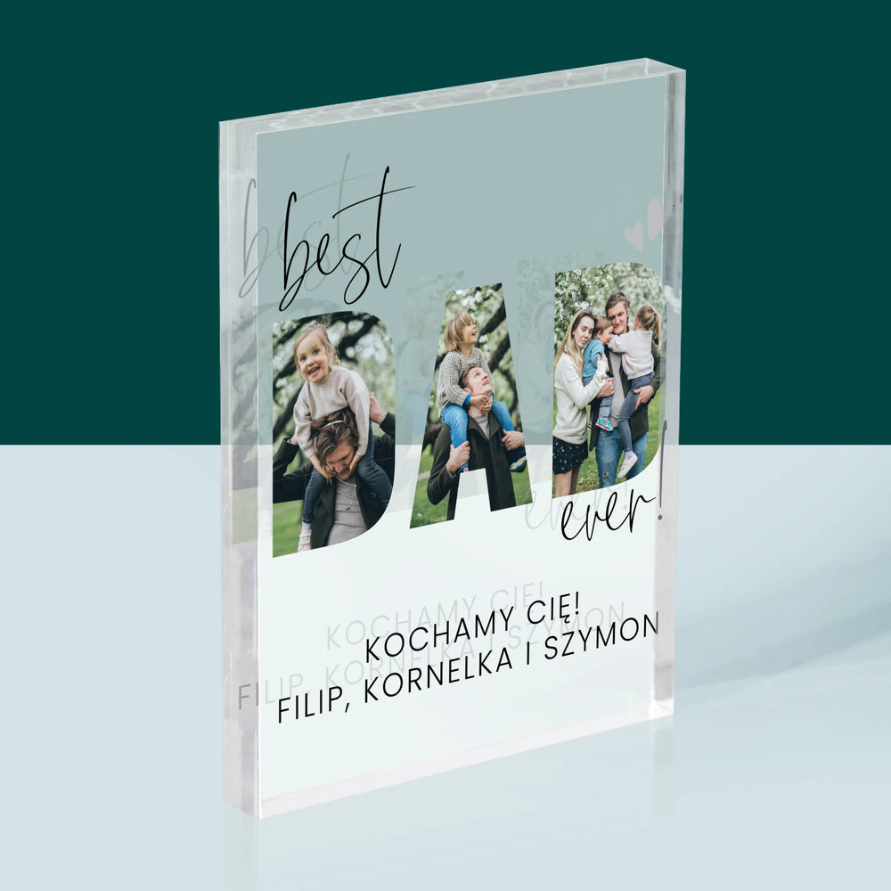 Słowo Ze Zdjęć: Best Dad Ever Z Podpisem - Blok Akrylowy z Nadrukiem