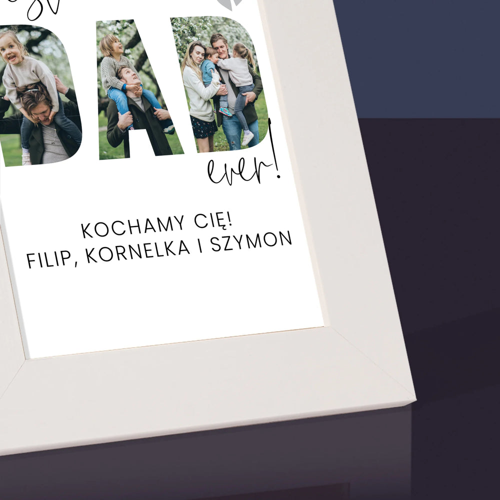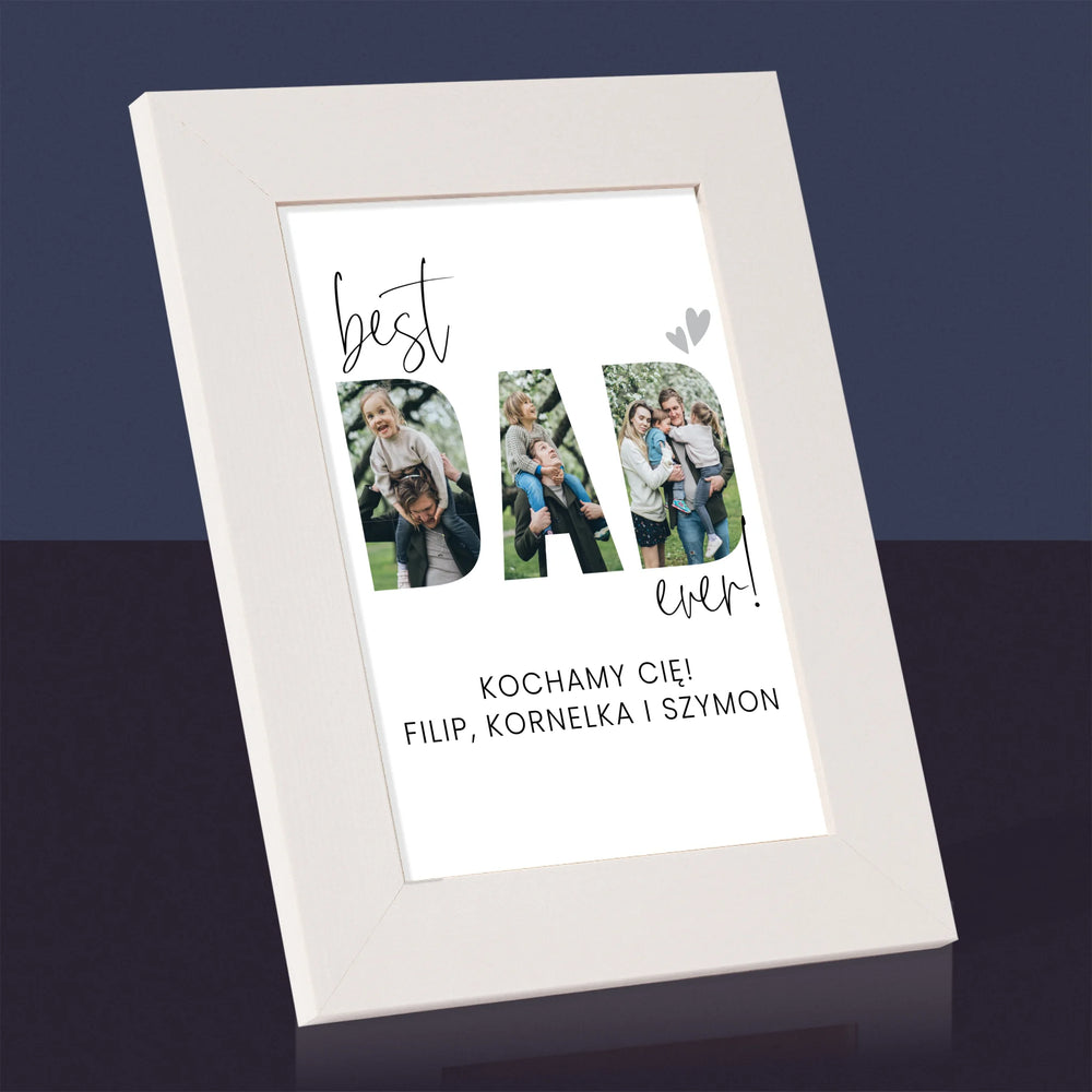 Słowo Ze Zdjęć: Best Dad Ever Z Podpisem - Ramka na Zdjęcia z Nadrukiem