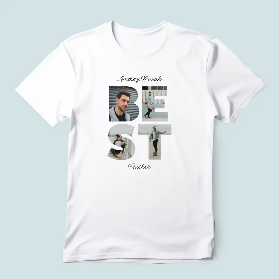 Słowo Ze Zdjęć: Best Teacher - Personalizowana Koszulka Męska