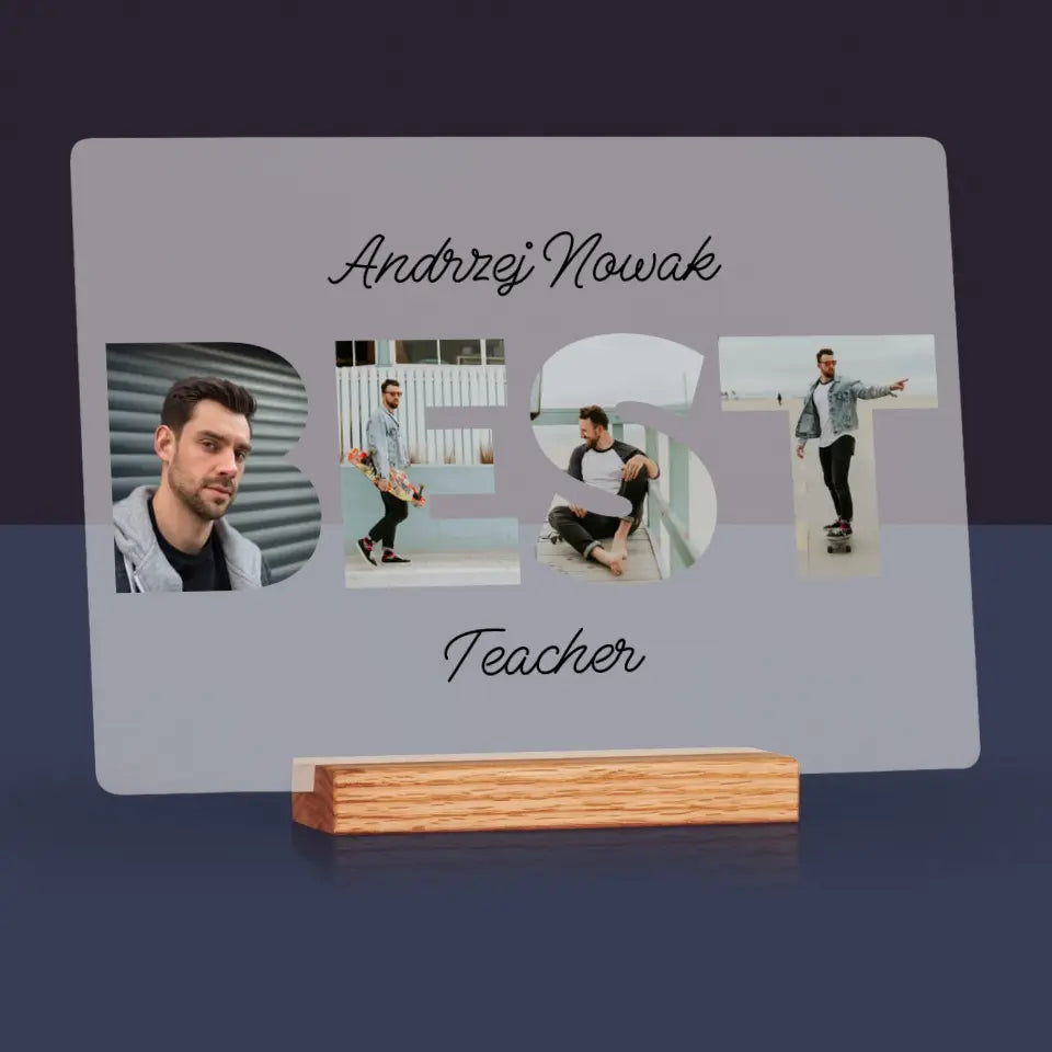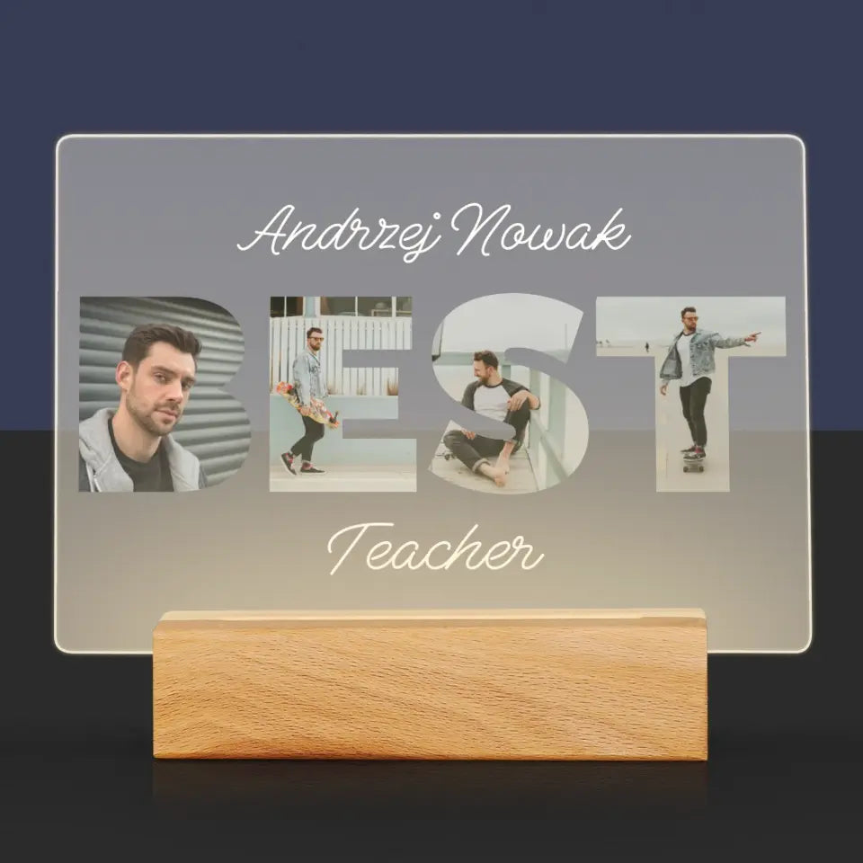 Słowo Ze Zdjęć: Best Teacher - Wydruk na szkle akrylowym LED Poziom