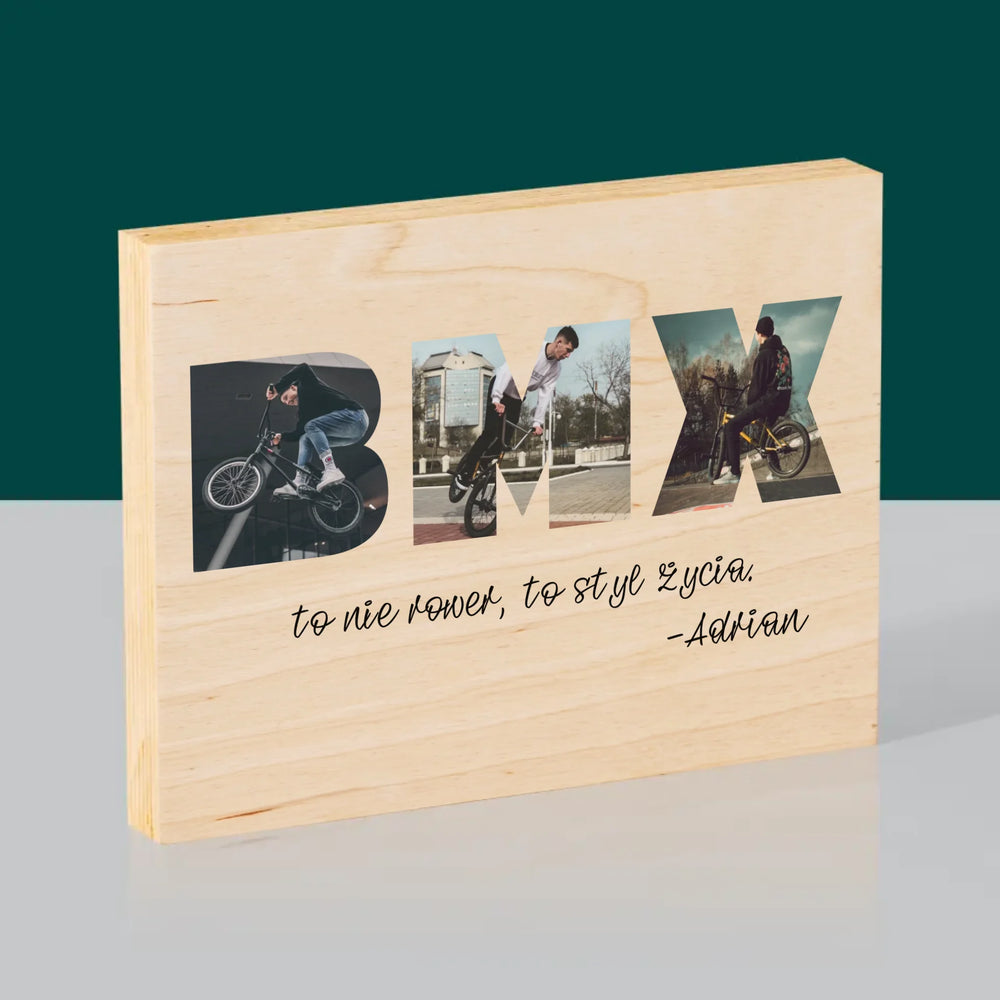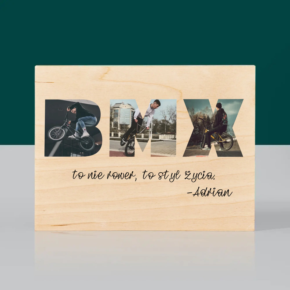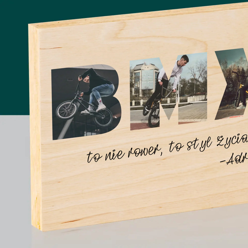 Słowo Ze Zdjęć: Bmx - Wydruk na drewnie - Poziom